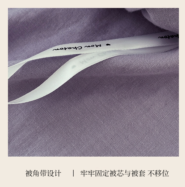 床上用品 > 被套 > FORTWO家纺原创设计(FOR TWO家纺) 2025新款40支双层纱撞色包边蝴蝶结款单被套-海盐 海盐-木槿紫