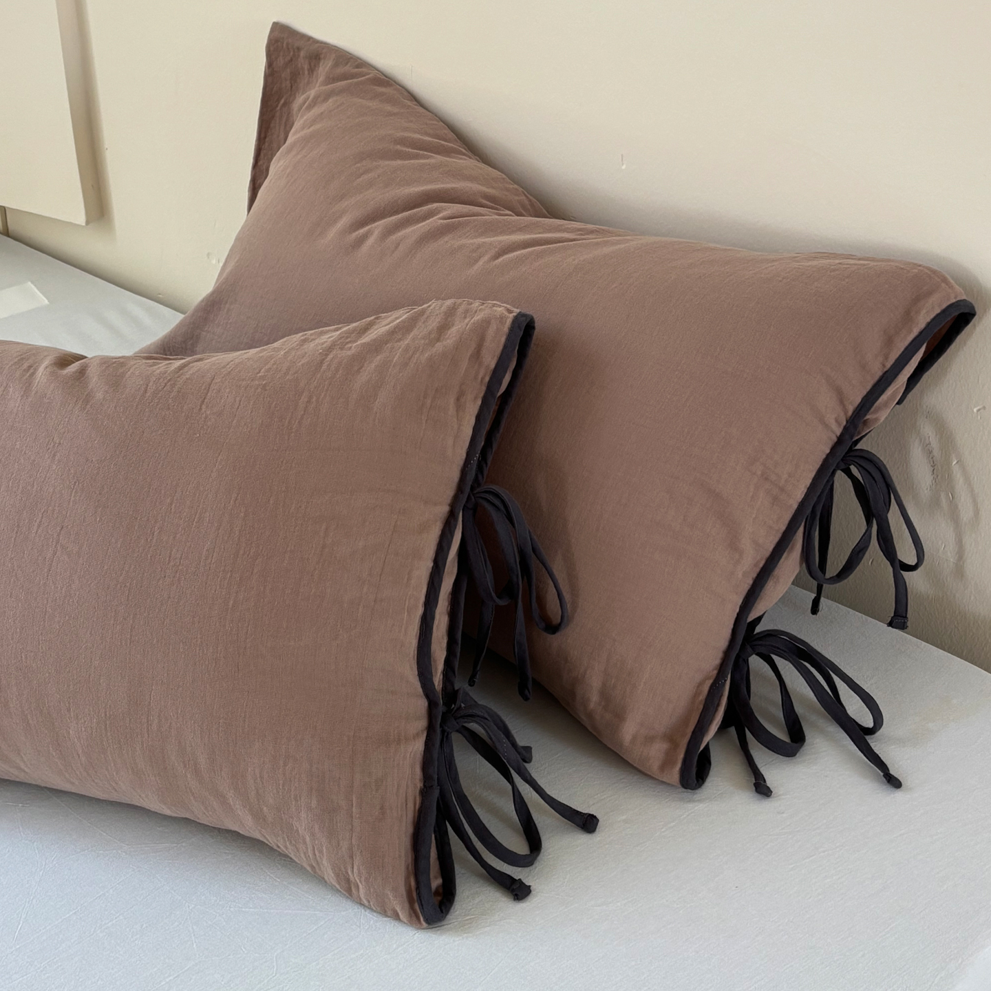 FORTWO家纺原创设计(FOR TWO家纺) 2025新款40支双层纱撞色包边蝴蝶结款单枕套-海盐 海盐-香草黄