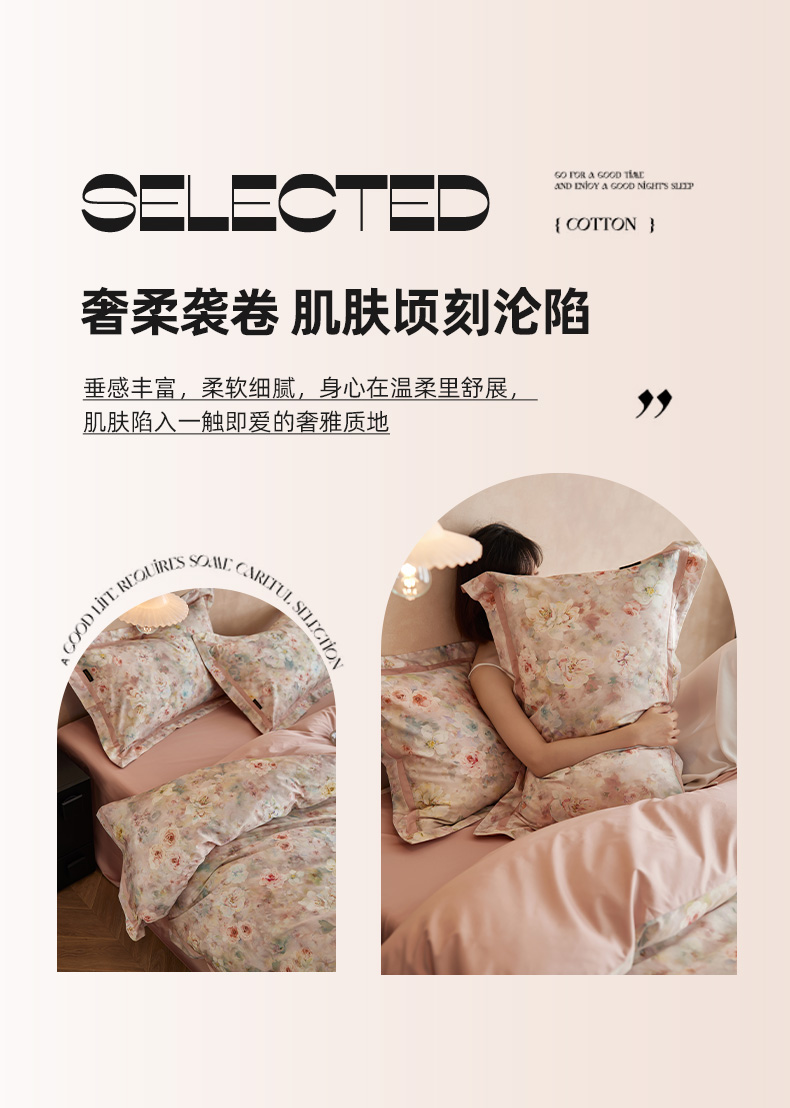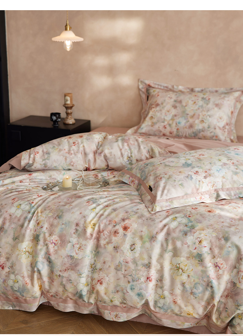 当前位置: 91家纺网 > 商品网购 > 床品套件 > 四件套 > 长绒棉四件套 > 轩和家居 2025新款轻奢A类70S长绒棉纯棉印花四件套-第二组 花织