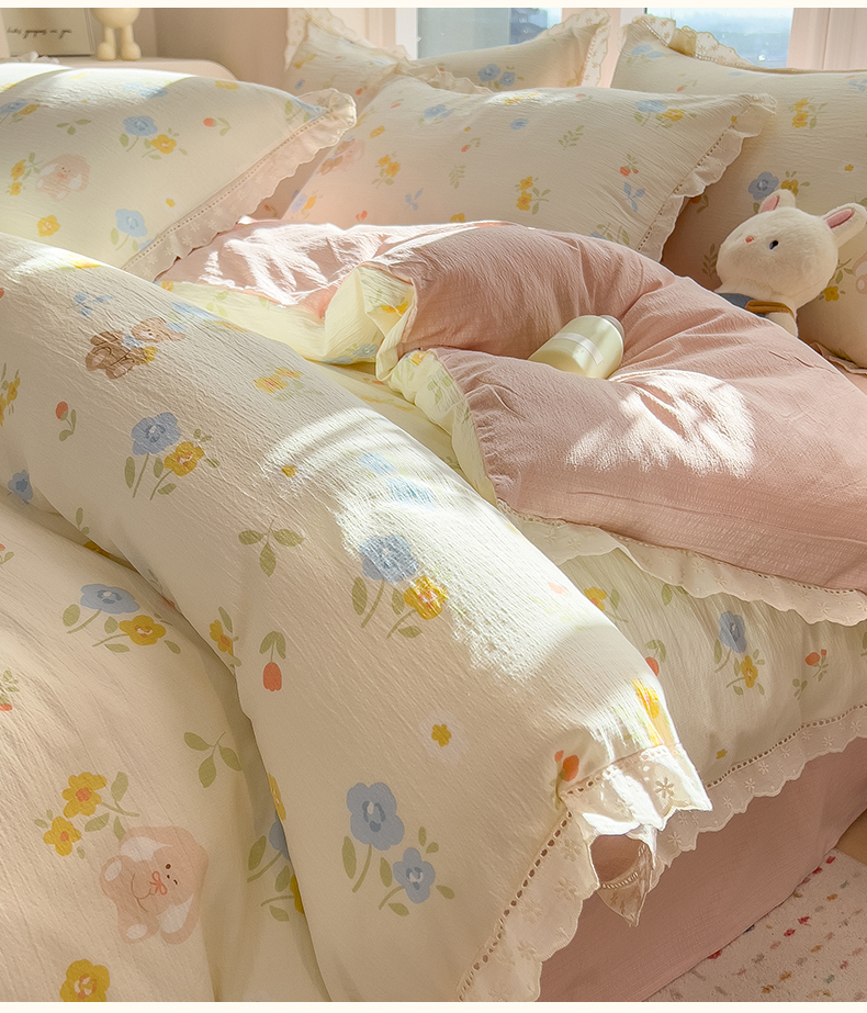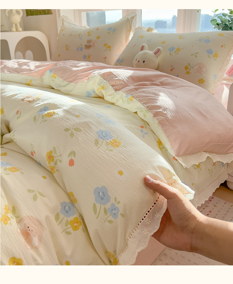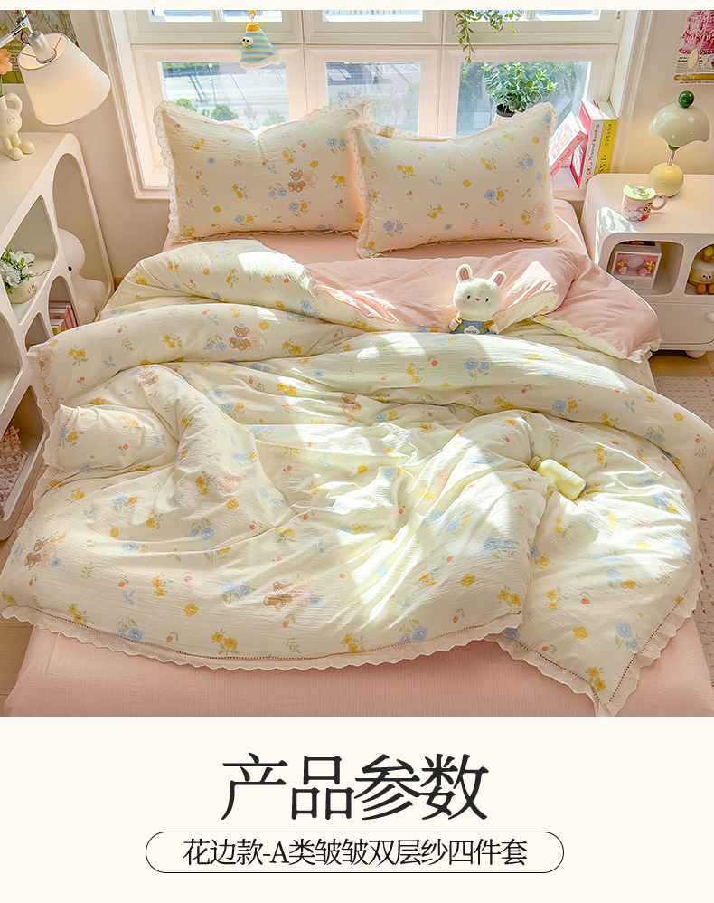 当前位置: 91家纺网 > 商品网购 > 床品套件 > 四件套 > 双层纱四件套 > 雯豆家纺2025新品皱皱双层纱四件套镂空花边款三件套 花小愈