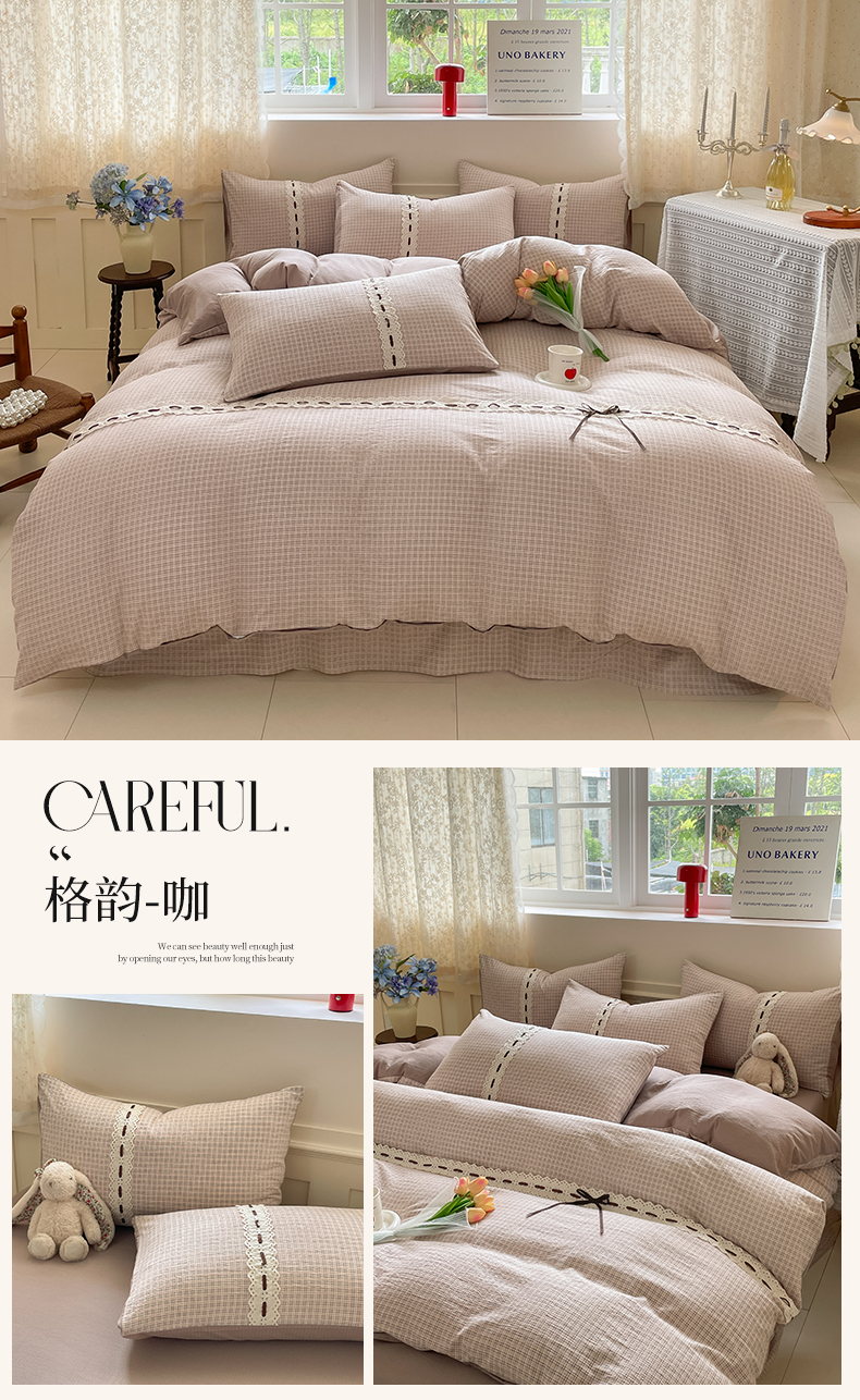 当前位置: 91家纺网 > 商品网购 > 床品套件 > 四件套 > 其它四件套 > 韩后家纺 2025新款木棉印花四件套 格韵-咖