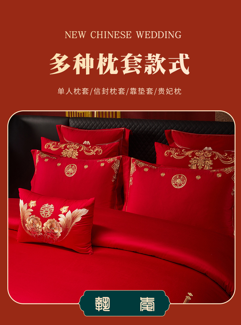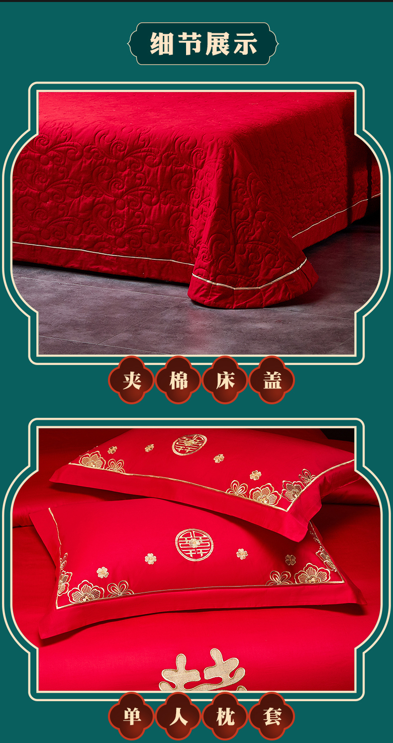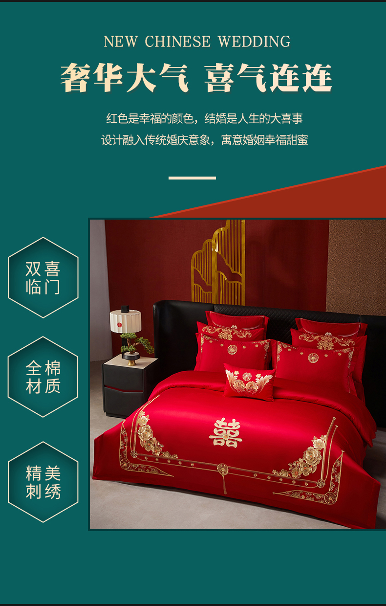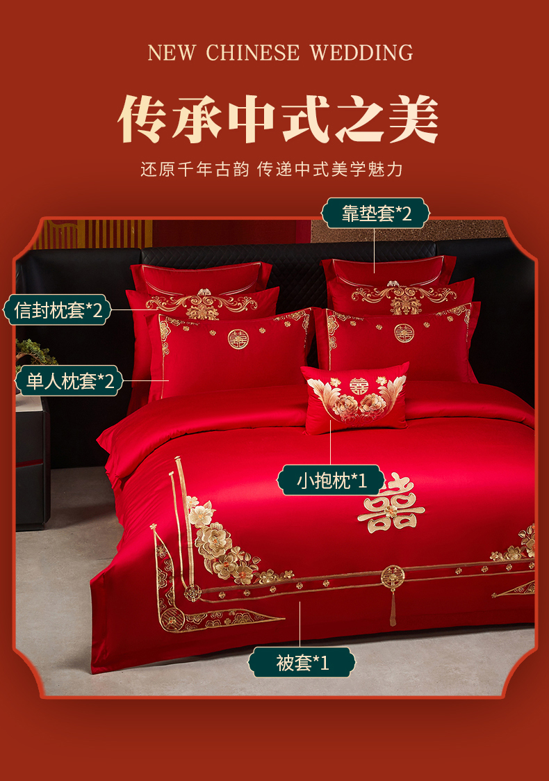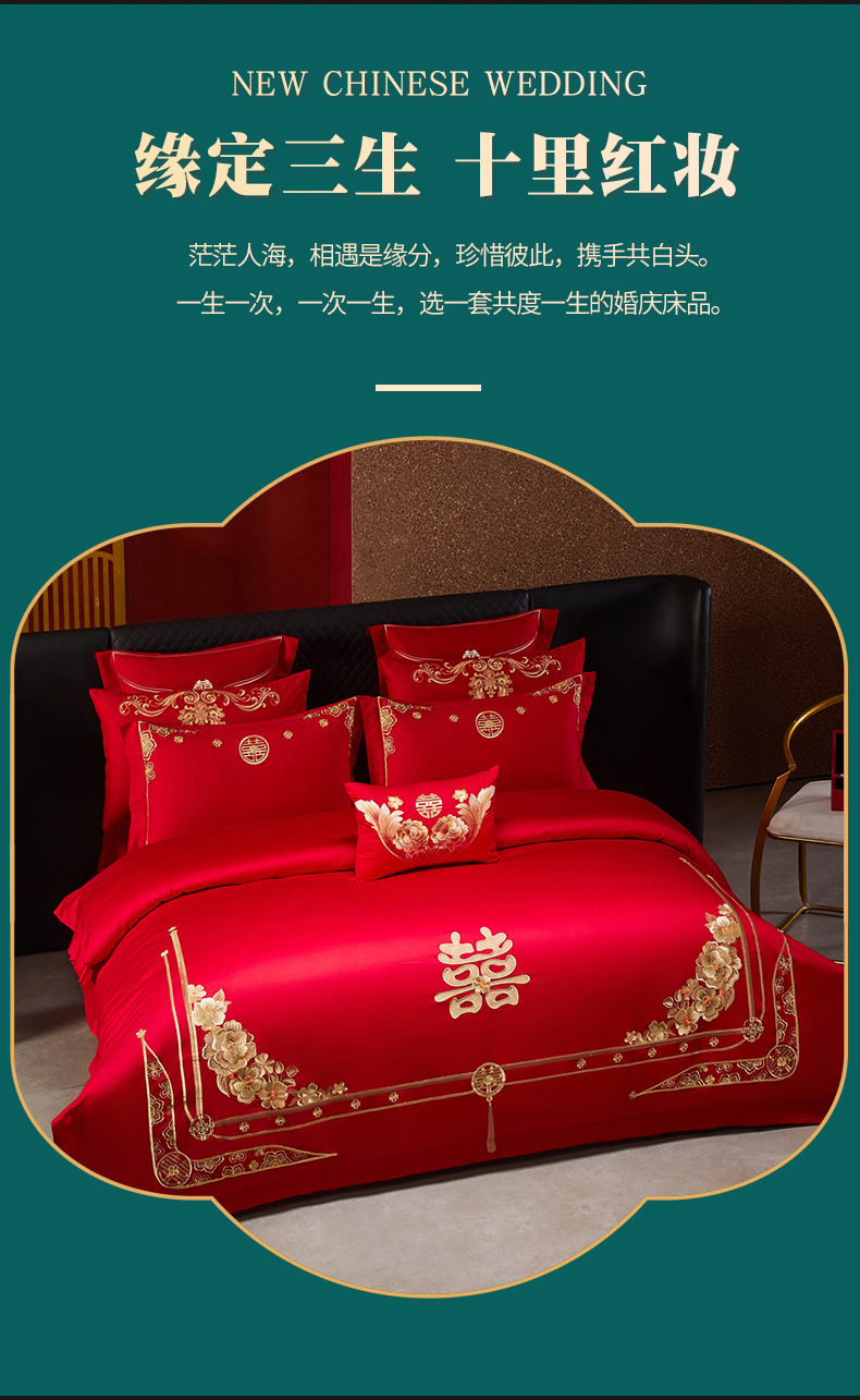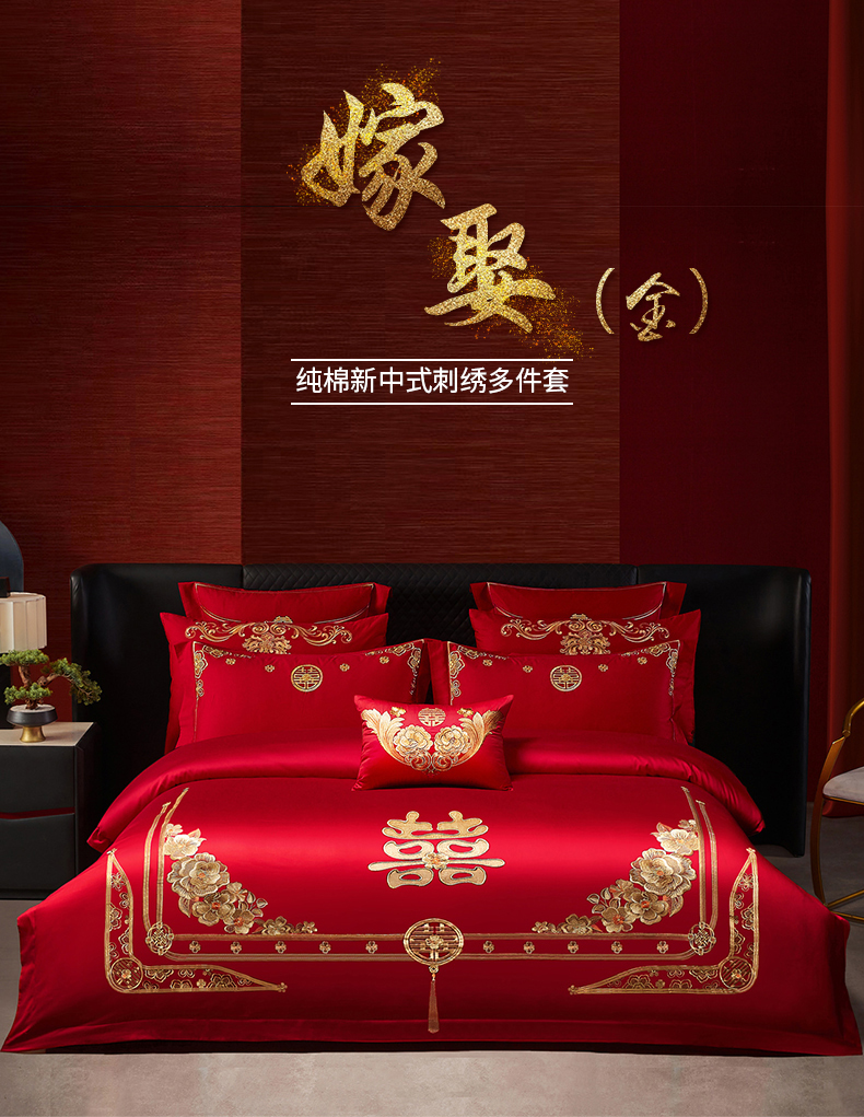 当前位置: 91家纺网 > 商品网购 > 床品套件 > 四件套 > 婚庆四件套 > 宏羽纺家纺 2025新款全棉100%全棉新中式婚庆多件套 全棉一嫁娶-金