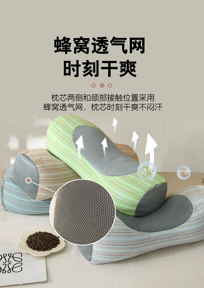 商品名称:金牛枕芯 2025新款全棉3d条纹荞麦枕头枕芯圆柱护颈枕 蓝色