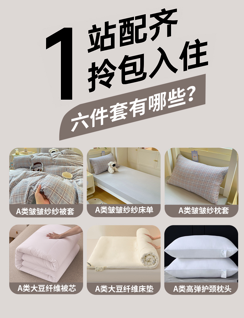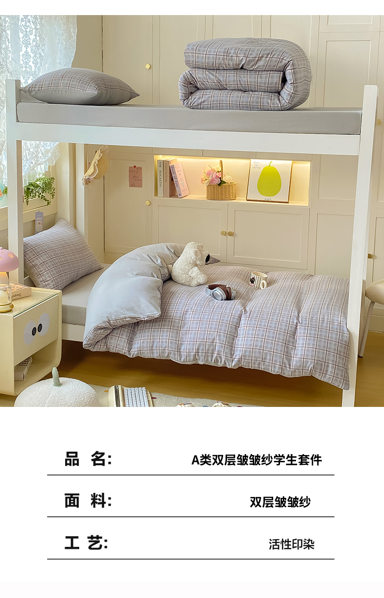 当前位置: 91家纺网 > 商品网购 > 床品套件 > 六件套 > 丽美人家纺 2025新款A类皱皱纱学生宿舍三件套上下铺三件套六件套 QB布兰卡