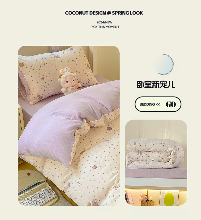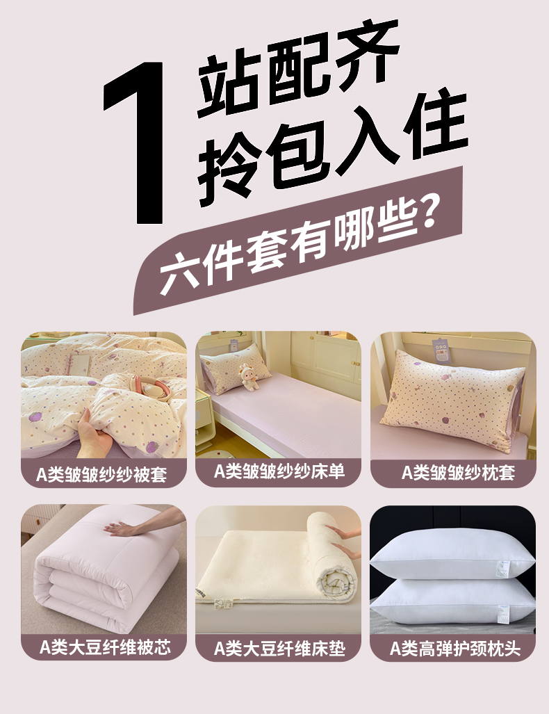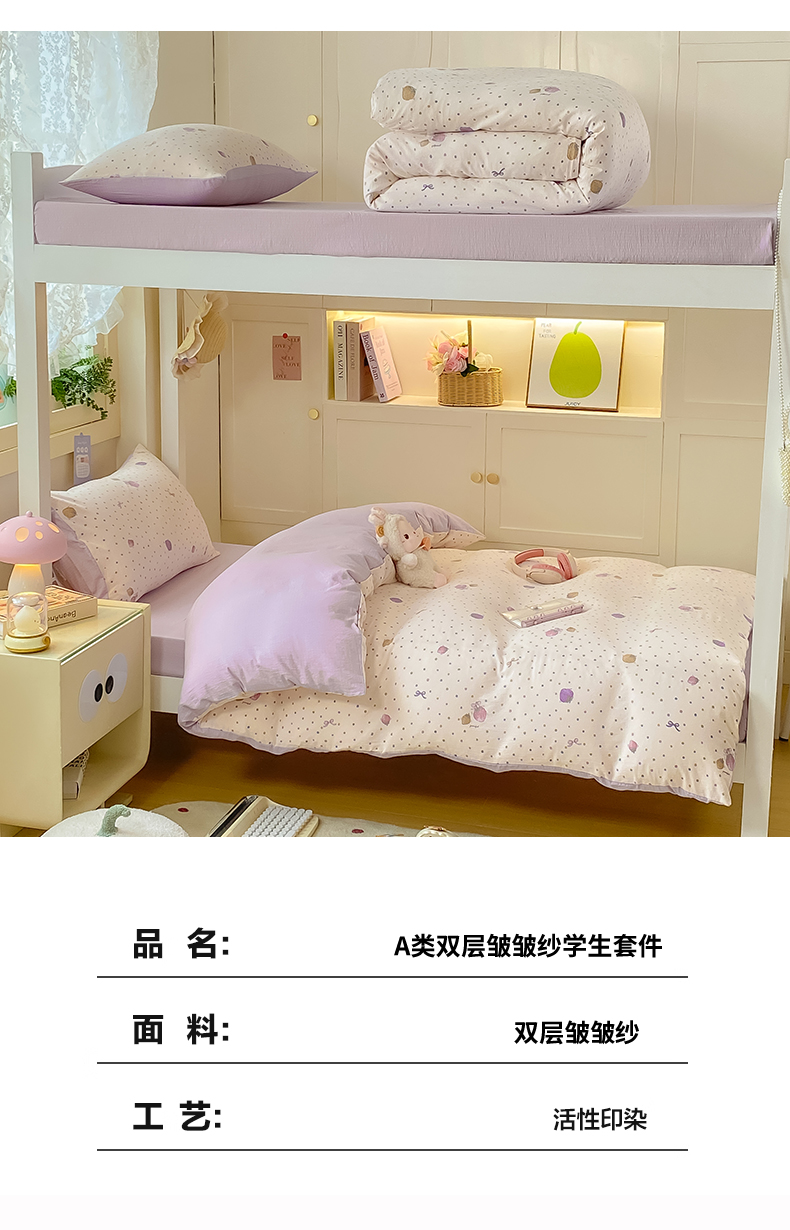 当前位置: 91家纺网 > 商品网购 > 床品套件 > 六件套 > 丽美人家纺 2025新款A类皱皱纱学生宿舍三件套上下铺三件套六件套 QB小甜心