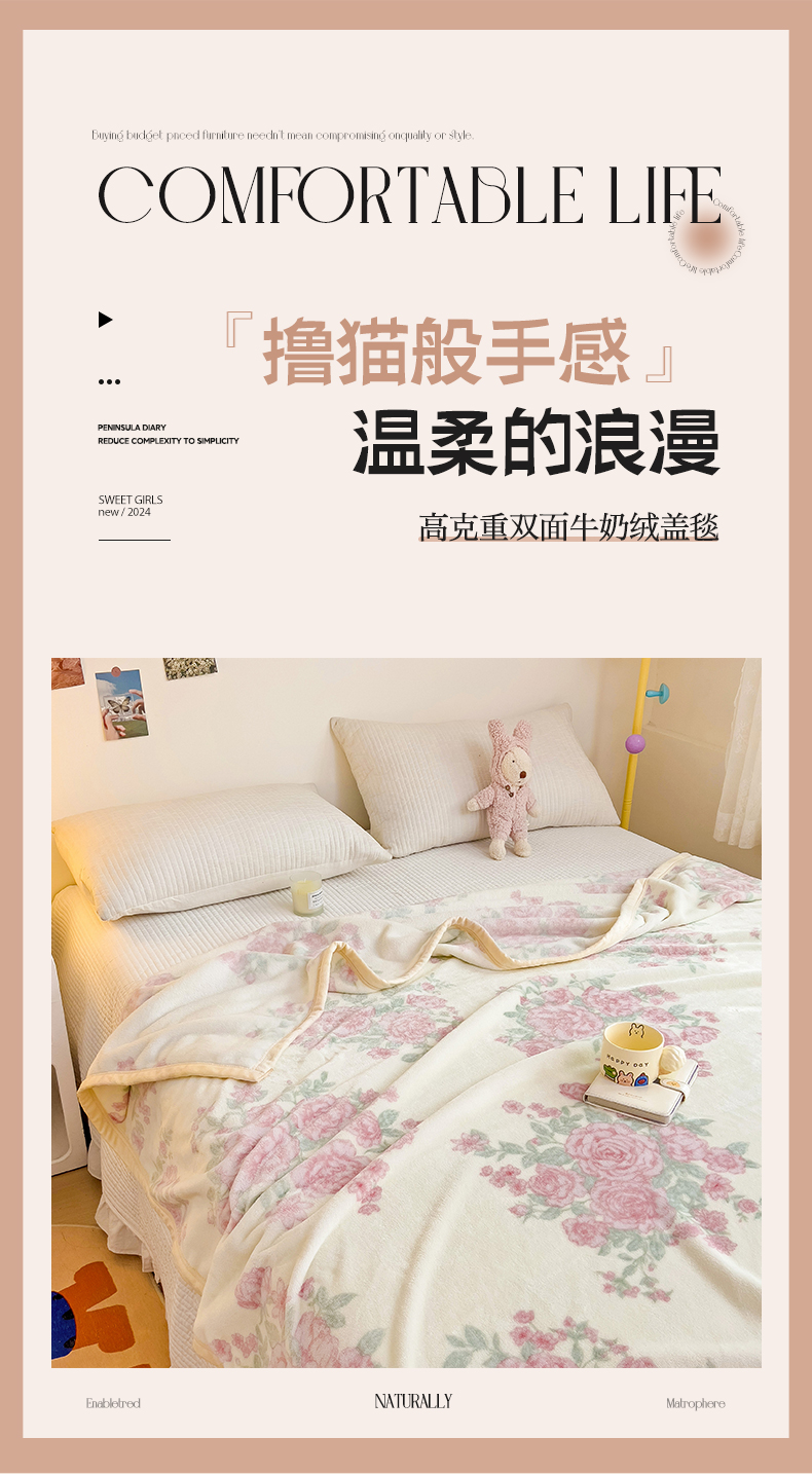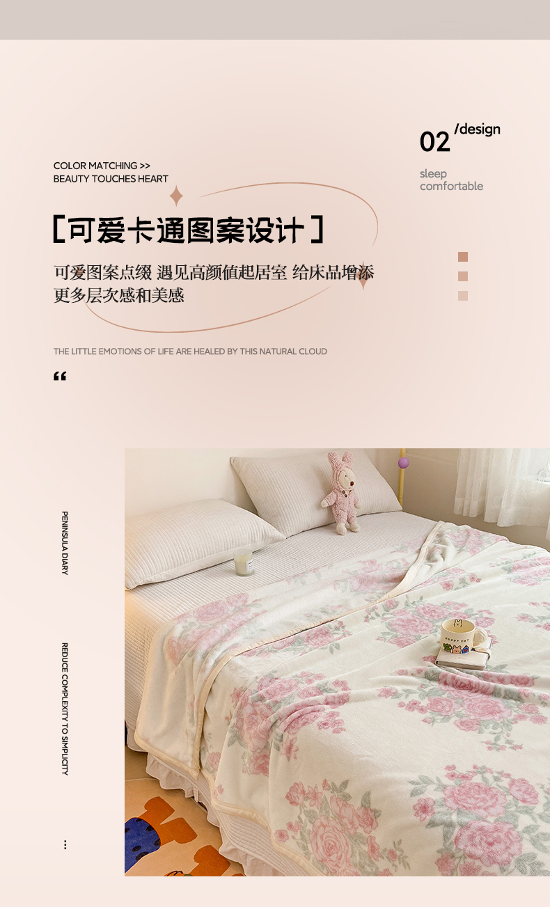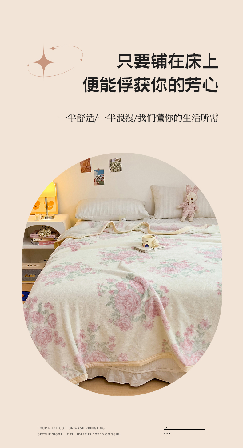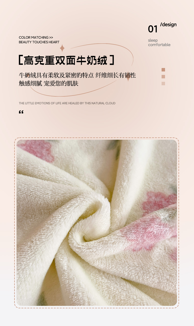 商品名称:启发毛毯 2025新款高克重双面牛奶绒盖毯 浪漫花语