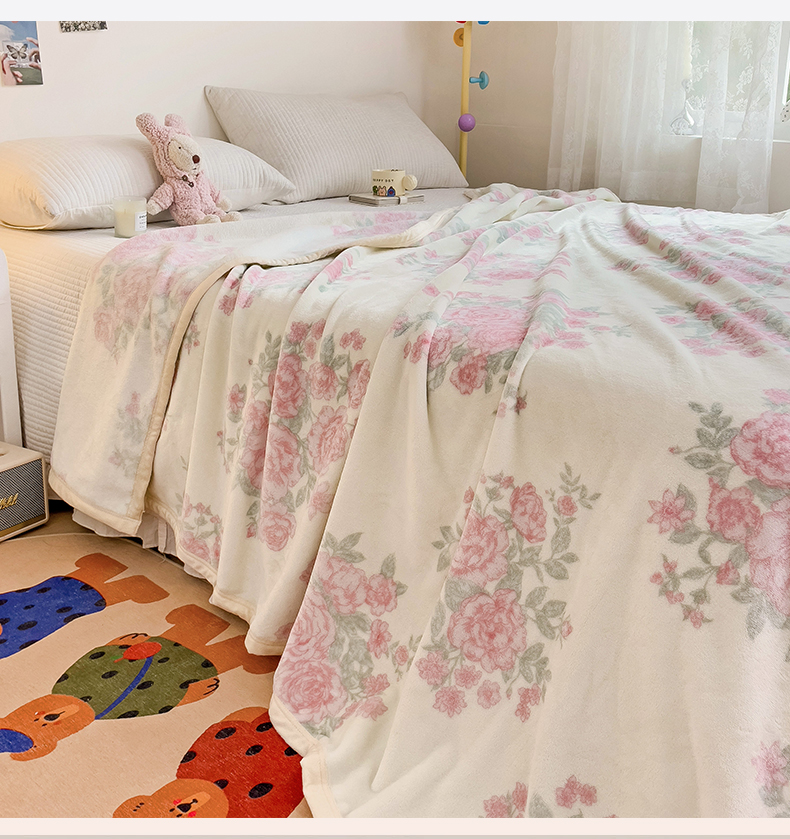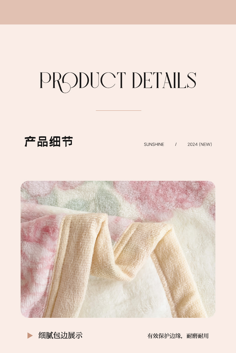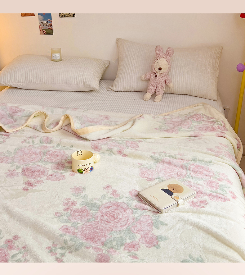 启发毛毯 2025新款高克重双面牛奶绒盖毯 浪漫花语