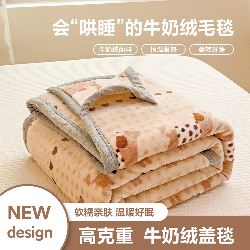 启发毛毯 2025新款高克重双面牛奶绒盖毯 假日狗狗