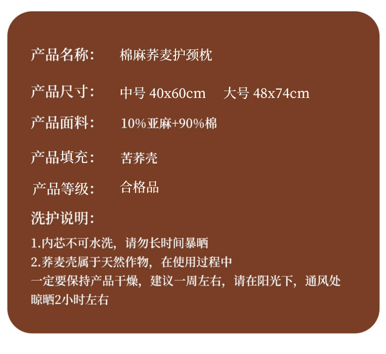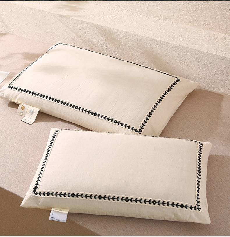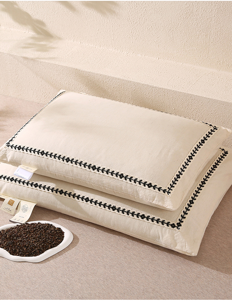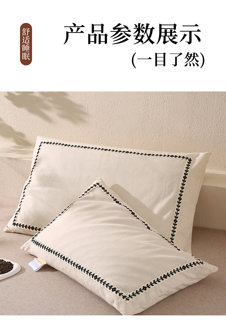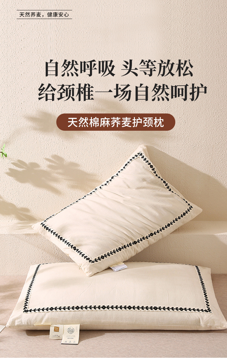 商品名称:(总)蔻眠 山屿清梦棉麻刺绣荞麦护颈枕芯亚麻全荞麦壳成人枕头