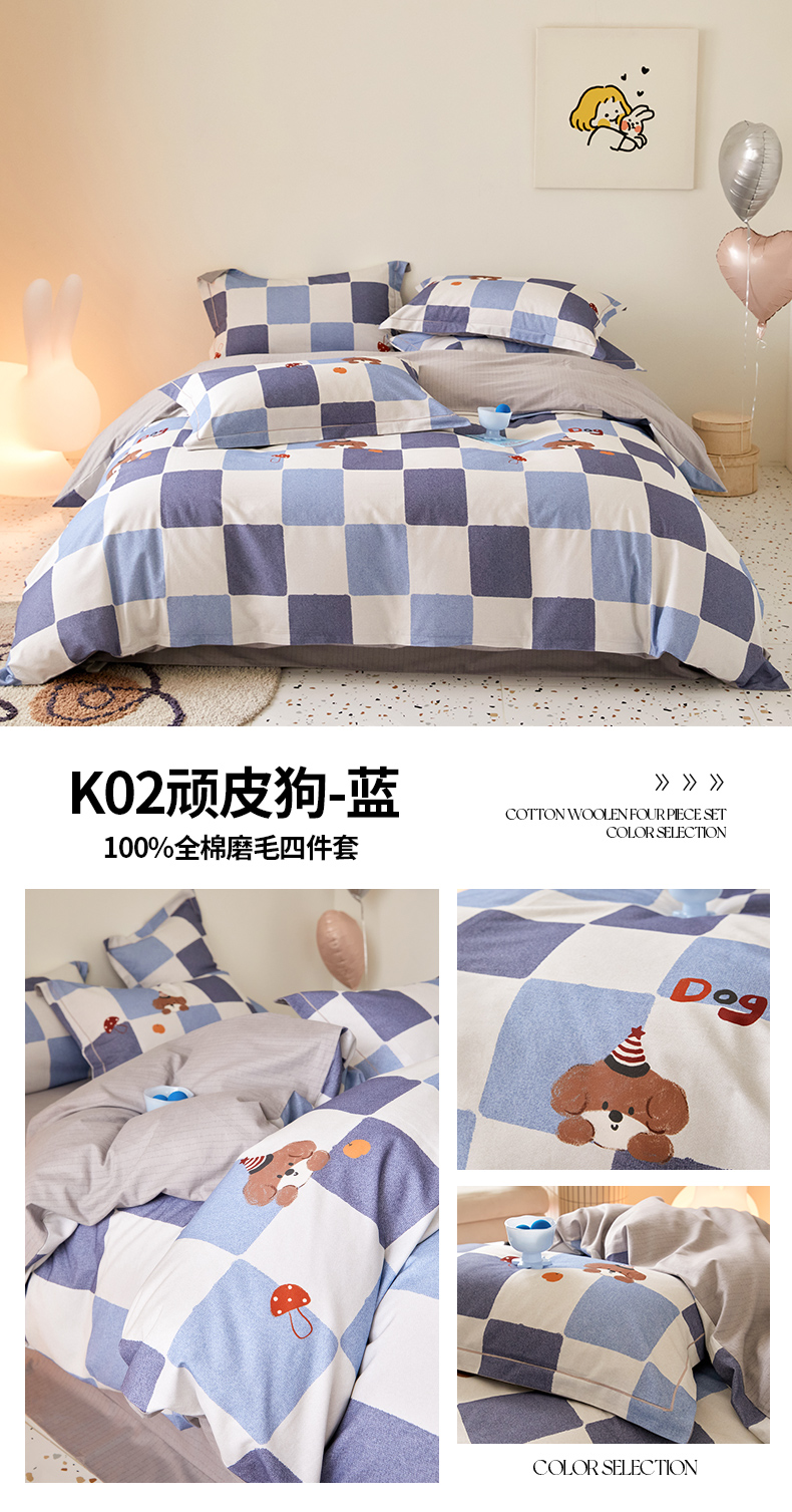 当前位置: 91家纺网 > 商品网购 > 床品套件 > 四件套 > 全棉普通四件套 > 梧桐树 2025新款100%全棉纯棉磨毛四件套-小清新系列 K02顽皮狗-蓝