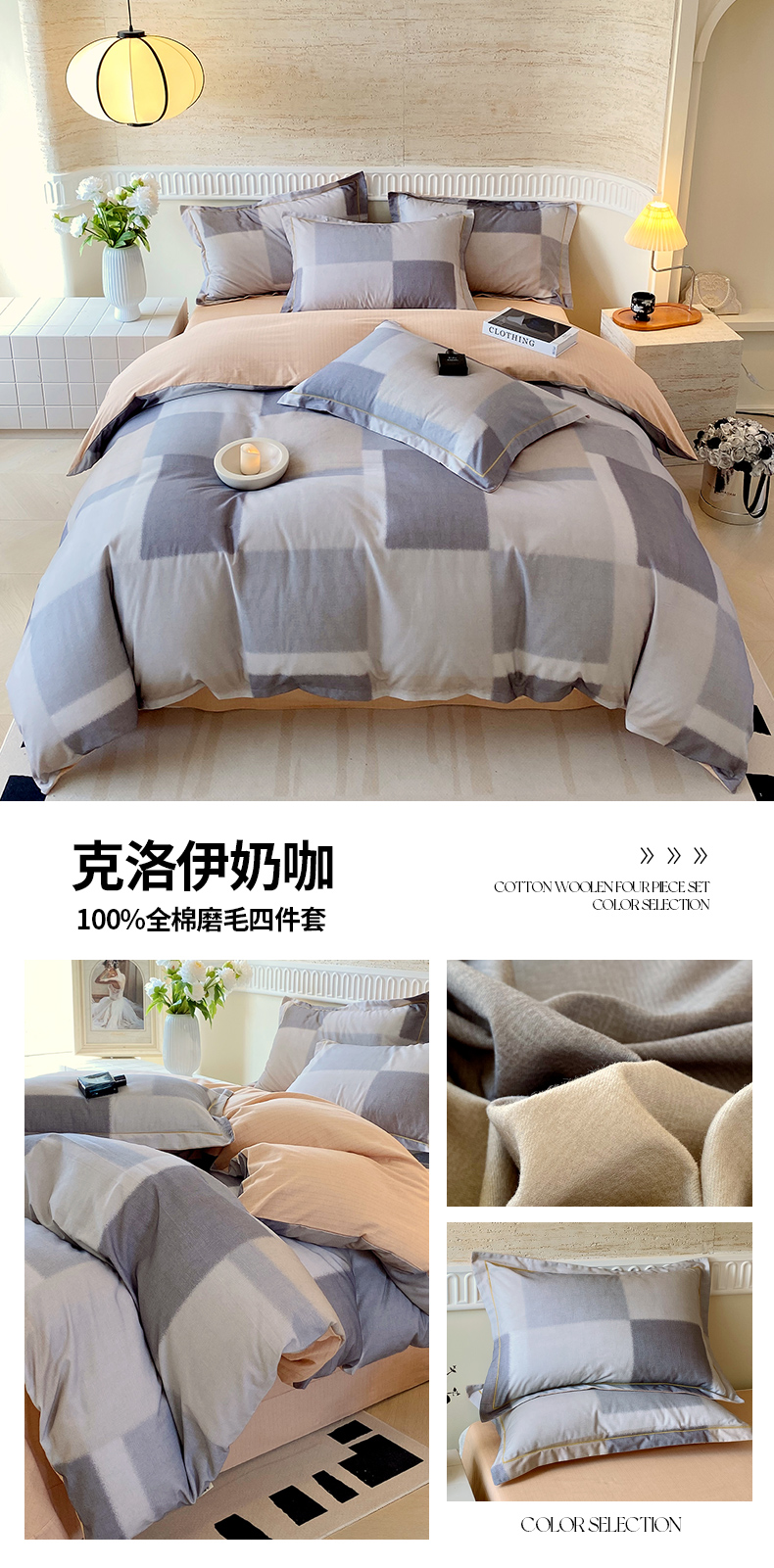 当前位置: 91家纺网 > 商品网购 > 床品套件 > 四件套 > 全棉普通四件套 > 梧桐树 2025新款全棉100%棉磨毛花卉简约系列四件套 林夕灰