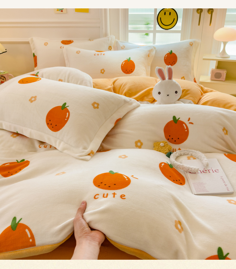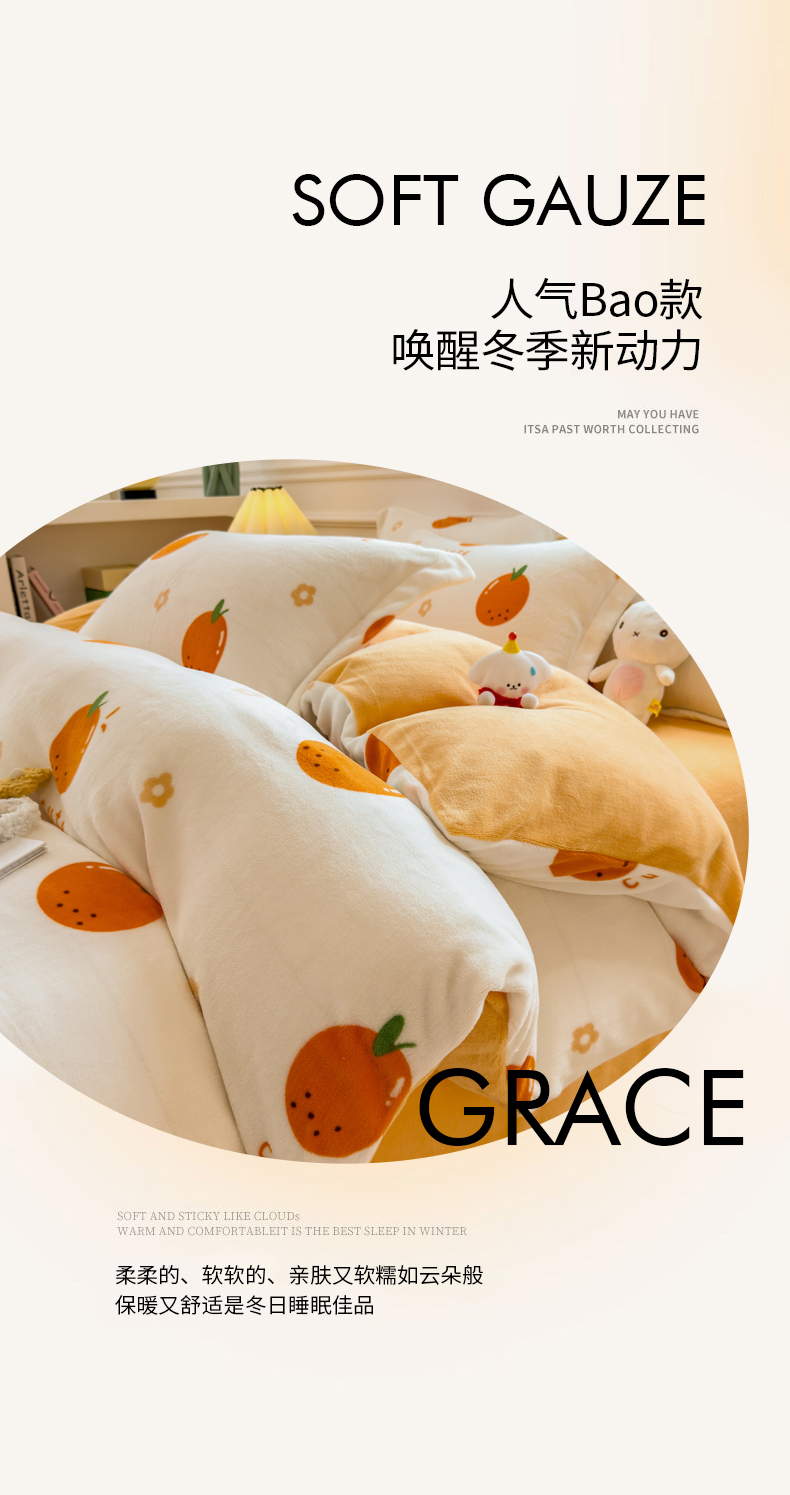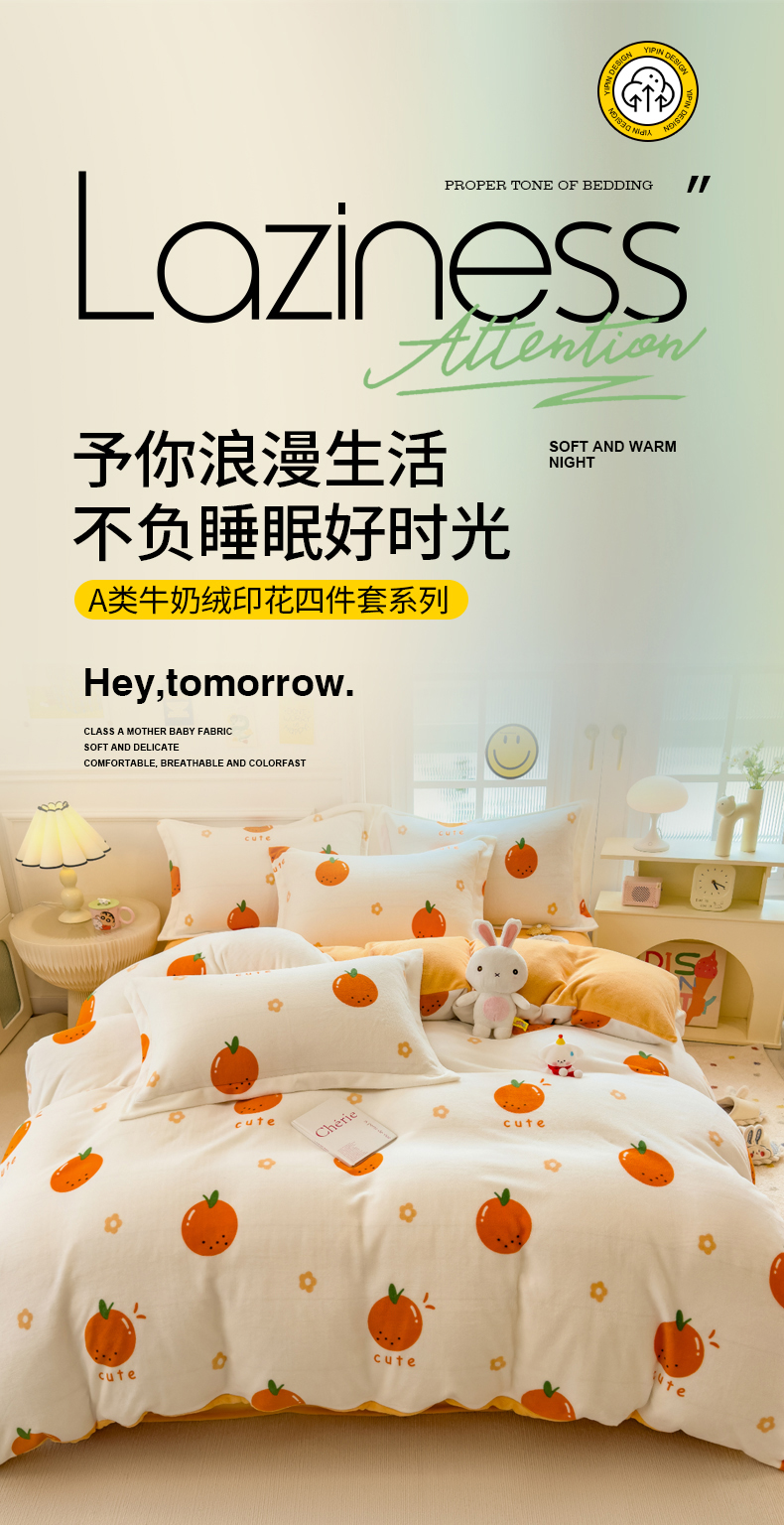 当前位置: 91家纺网 > 商品网购 > 床品套件 > 四件套 > 牛奶绒四件套 > 丝羽坊 2025新款200克加厚小清新牛奶绒床单款 床笠款四件套 被套 心想事橙