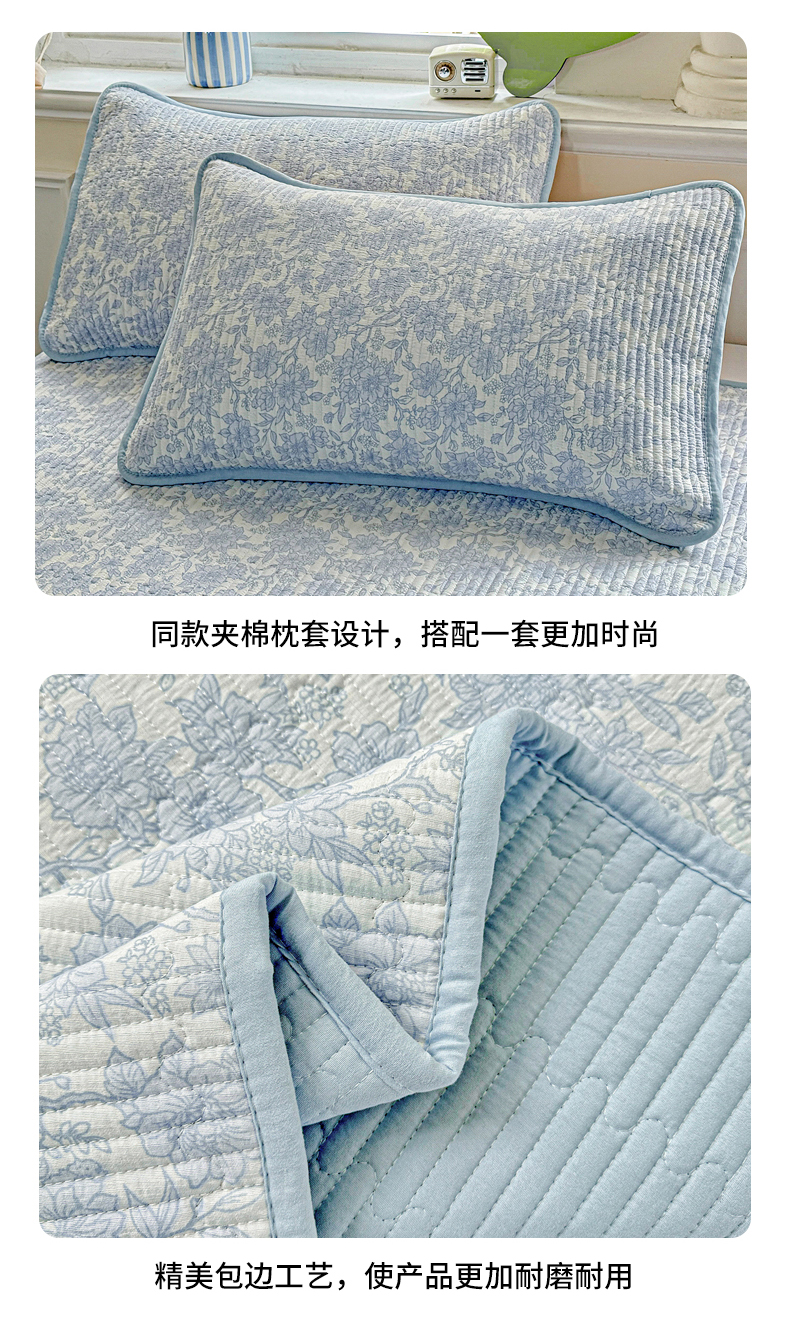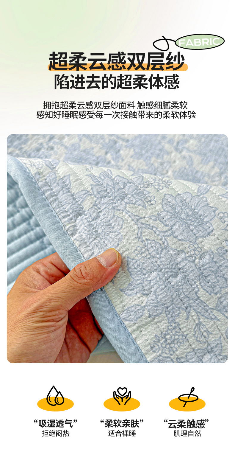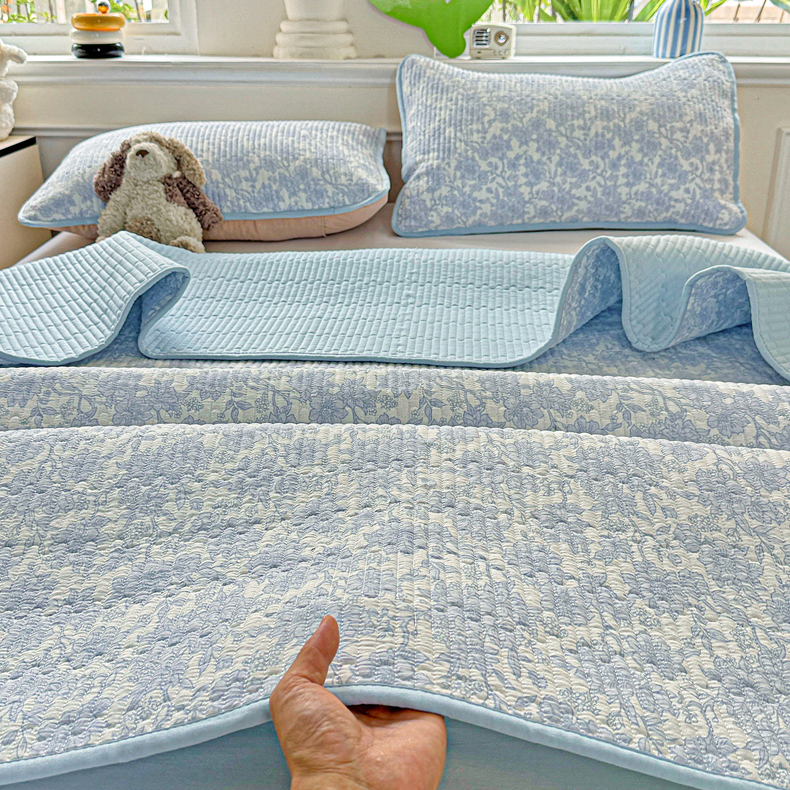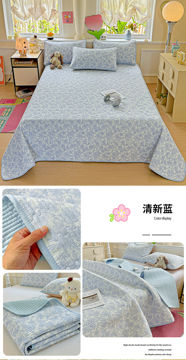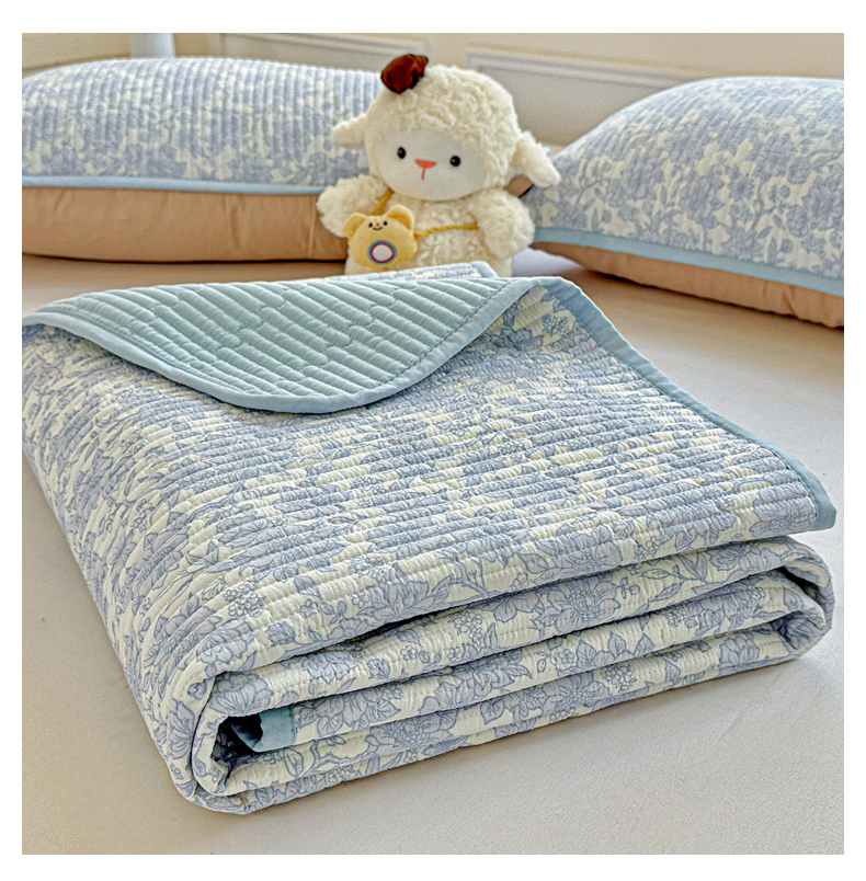 • 91家纺网 家纺一手货源 找家纺 恒尚居 2025新款双层纱床盖床盖单品单床盖云感夹棉床单床垫软床垫-四季款【系列一】 【清新蓝】双层纱