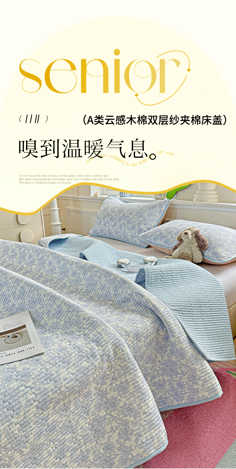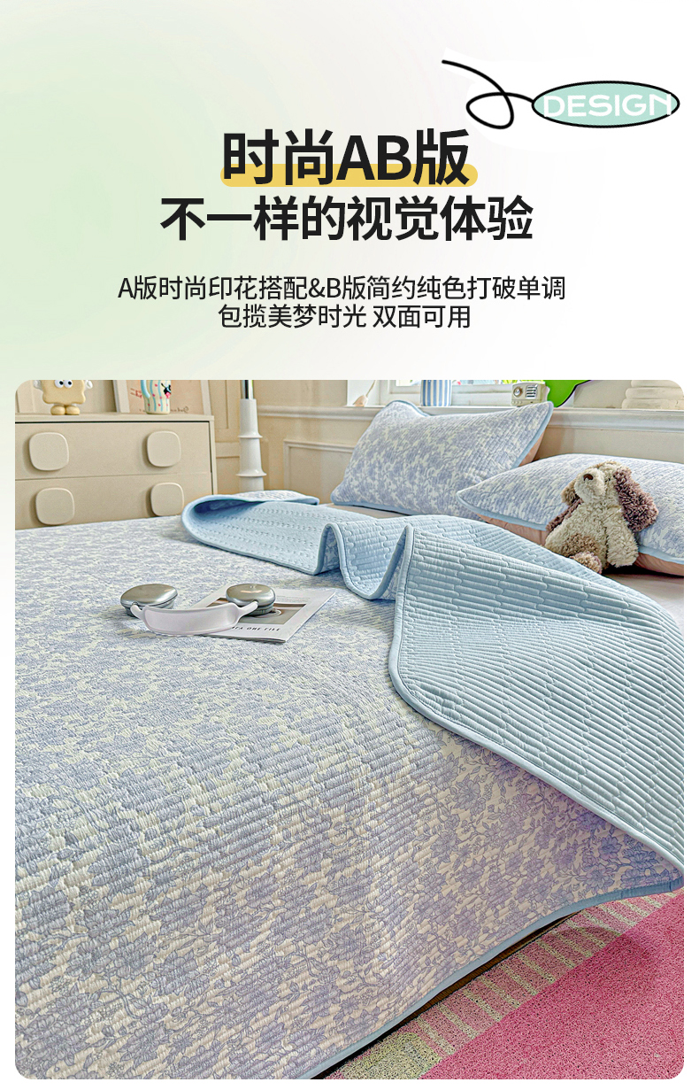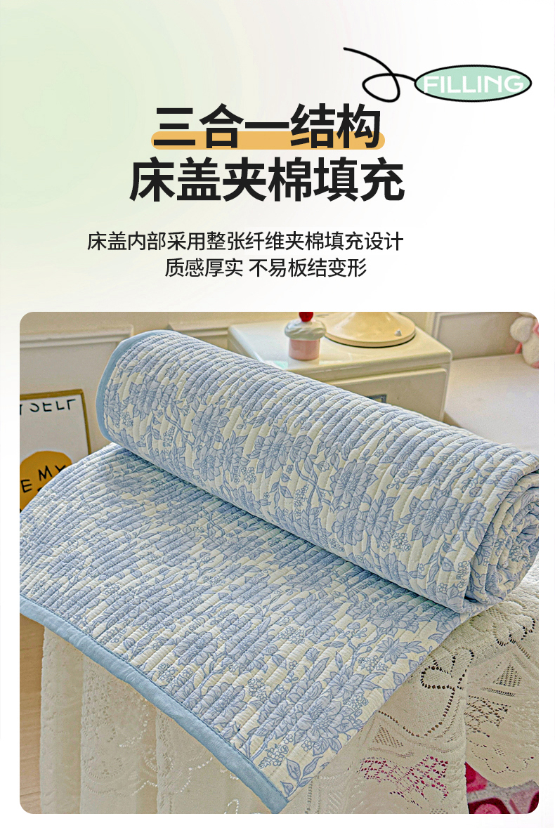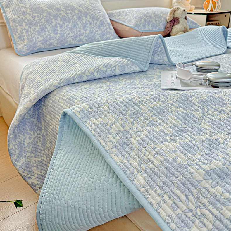 • 91家纺网 家纺一手货源 找家纺 恒尚居 2025新款双层纱床盖床盖单品单床盖云感夹棉床单床垫软床垫-四季款【系列一】 【清新蓝】双层纱