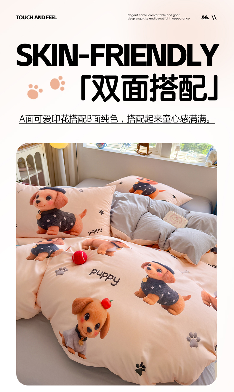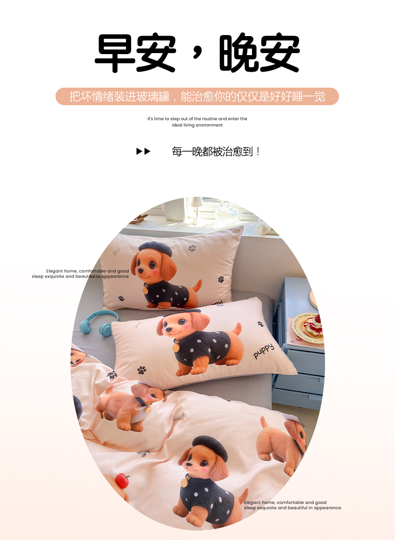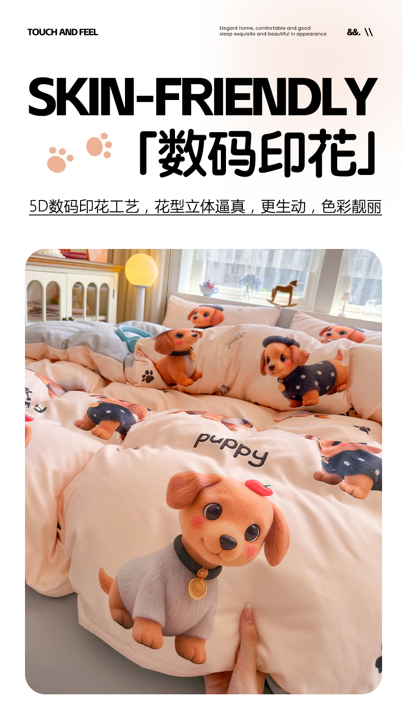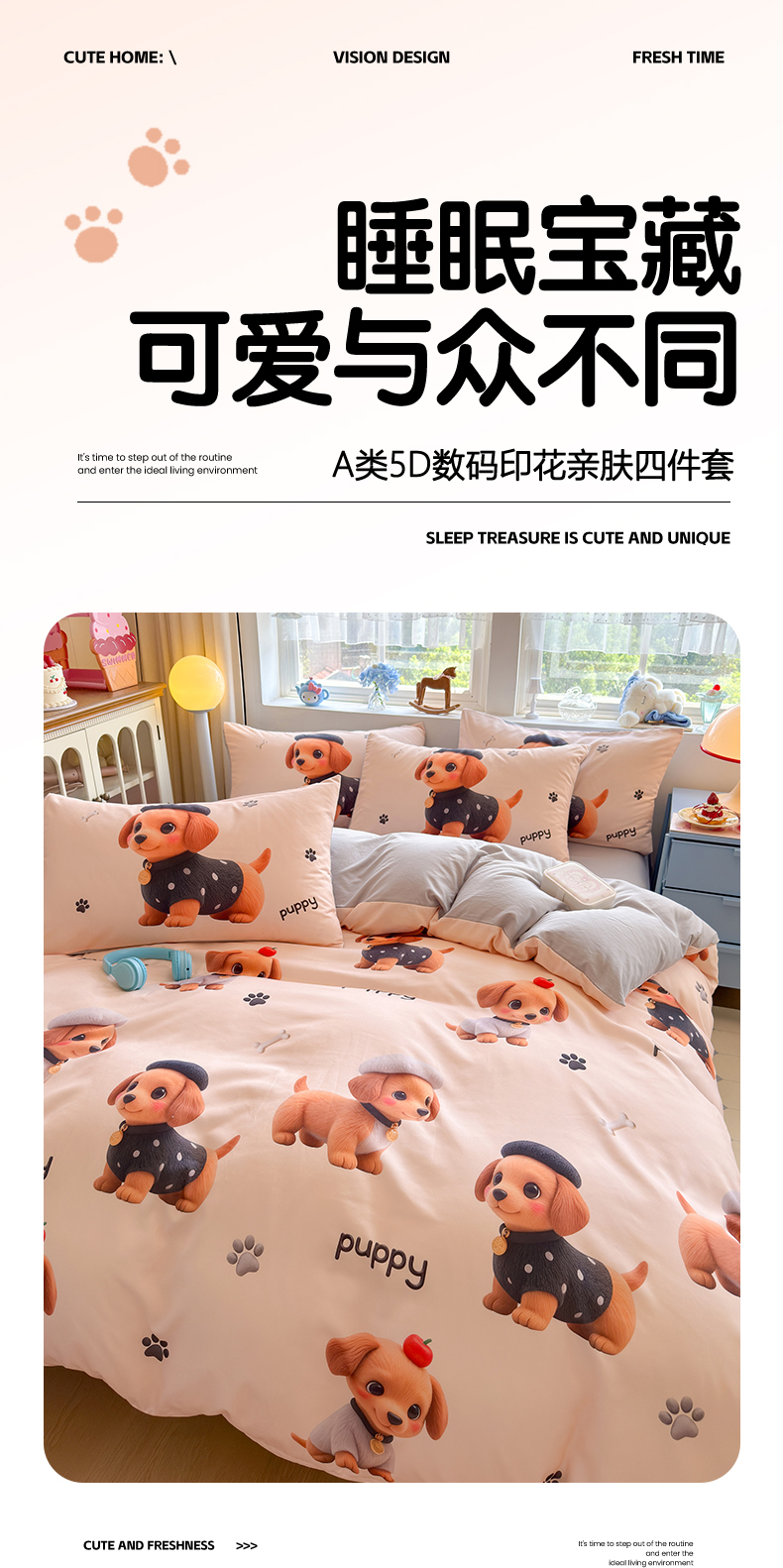 当前位置: 91家纺网 > 商品网购 > 床品套件 > 四件套 > 其它四件套 > 优卡迪家纺馆 2025新款110克5D数码印花四件套 呆萌狗狗
