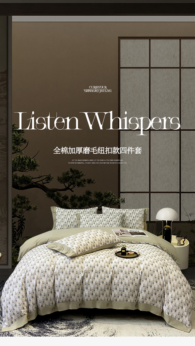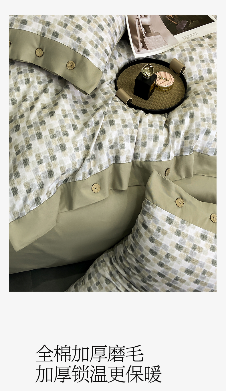 (总)麦田家纺 2025新款全棉纯棉轻奢加厚磨毛纽扣款四件套,格律时尚,光遇-咖,品思-灰,千屿-卡其,拾光-灰,随感-红咖,随感-绿,温言-浅咖,雾林-浅灰,寻山-豆沙,雅集-咖,云裳,知凡,艾文,几何,乐享,马德里-红,马德里-绿
