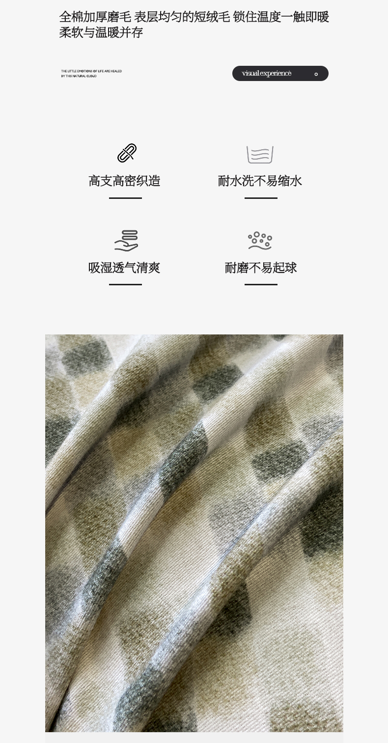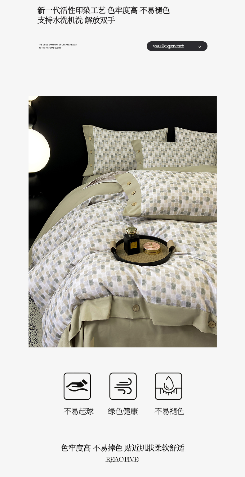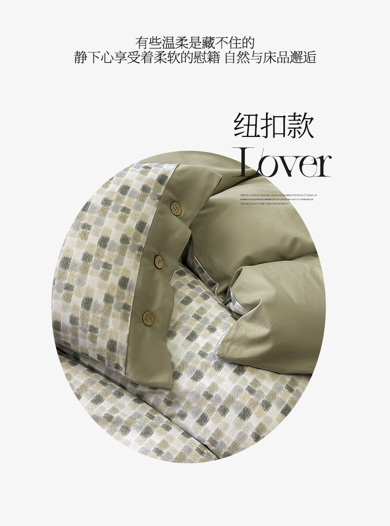 商品名称:麦田家纺 2025新款全棉纯棉轻奢加厚磨毛纽扣款四件套 随感-绿