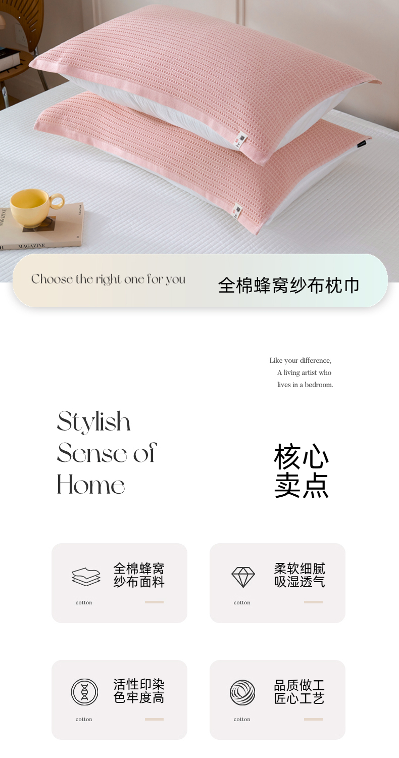 • 91家纺网 家纺一手货源 找家纺 悦然毛巾被 2025新款全棉纯棉蜂窝棉语单枕巾 枕巾单件 蜂窝棉语香粉 52x78cm枕巾一对