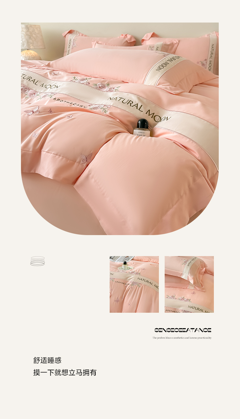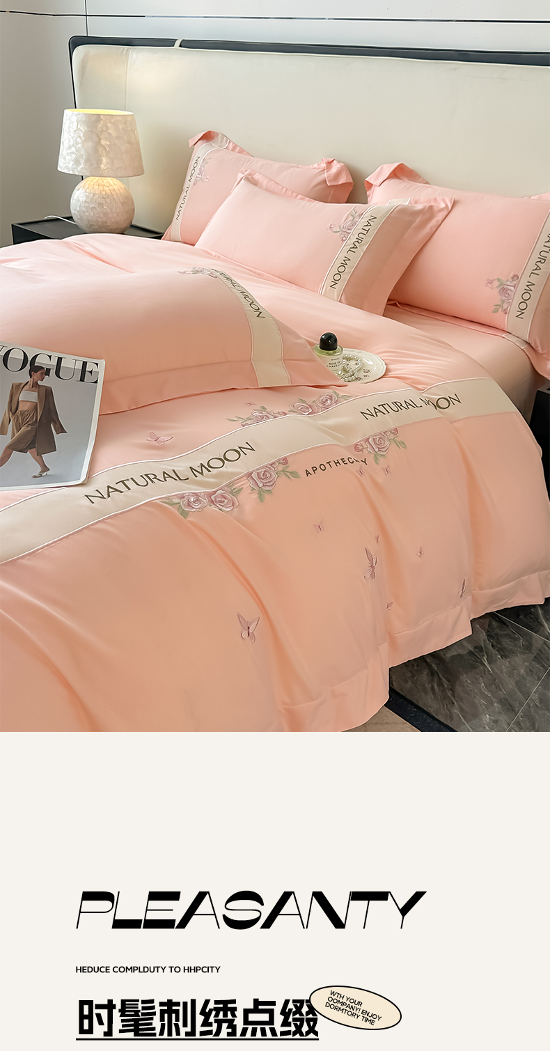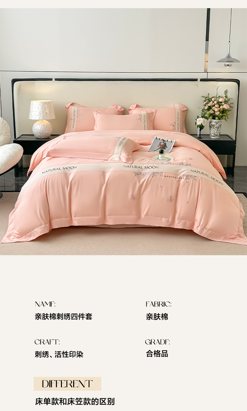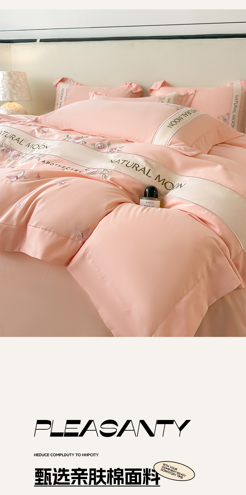 商品名称:遇见家居生活馆 2025新款亲肤棉刺绣四件套-花田里 花田里-樱花粉