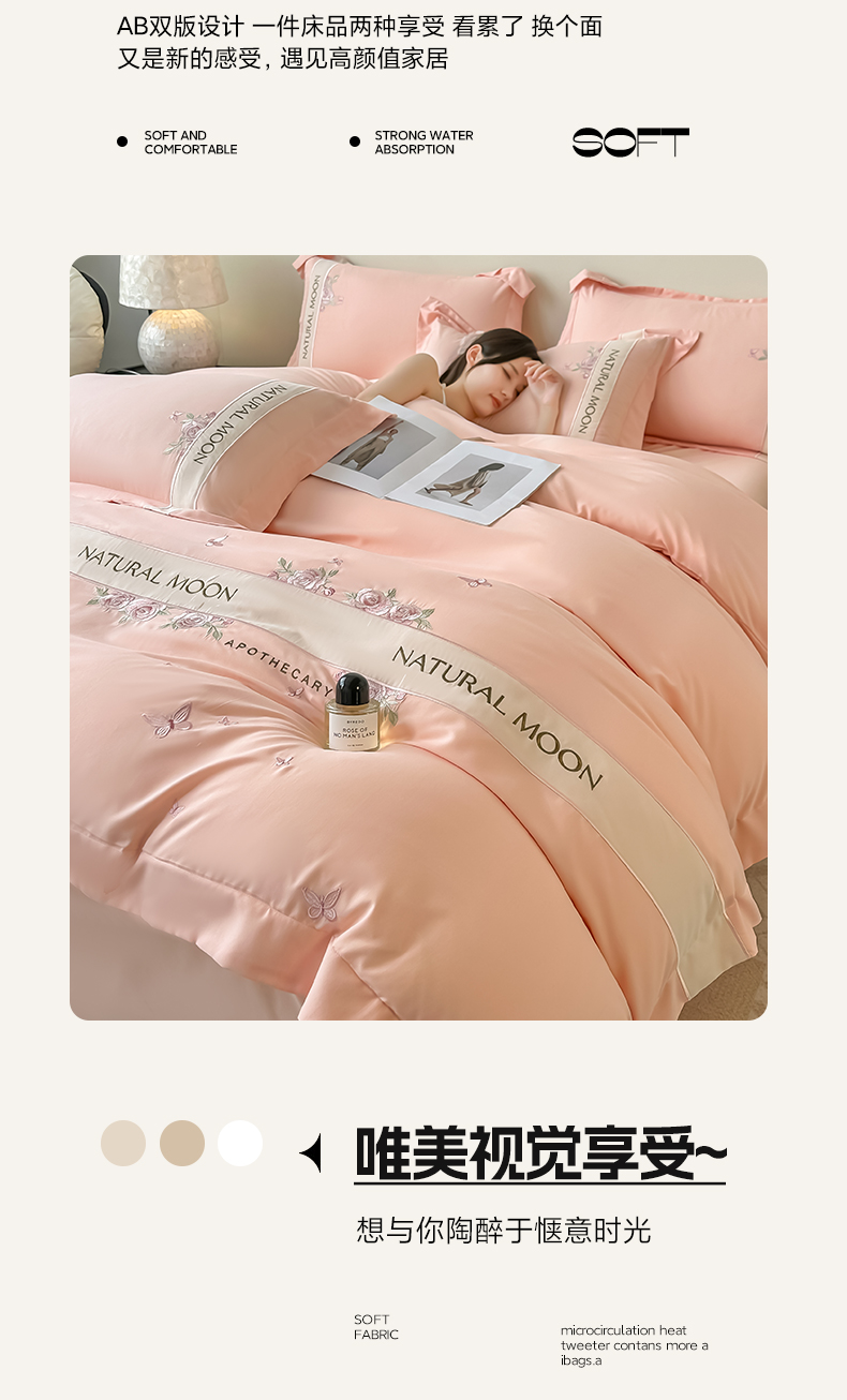 (总)2025新款小清新全棉纯棉四件套-若溪,麦田绿,茉莉奶白,霞光紫,杏花粉,雪山粉