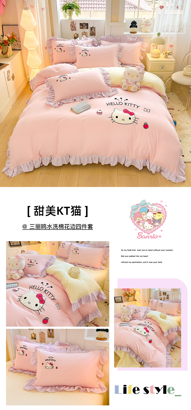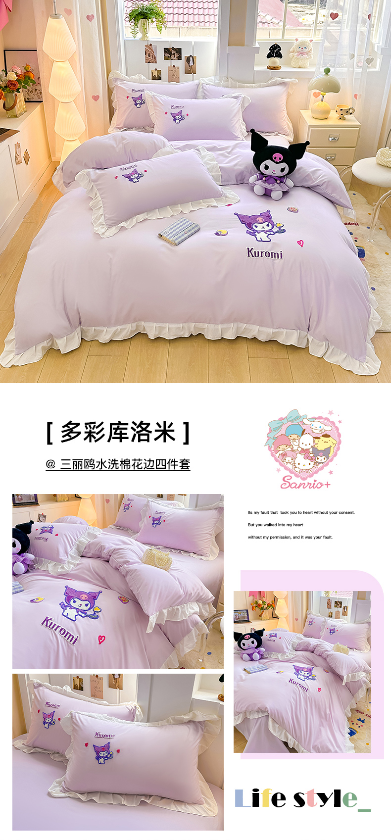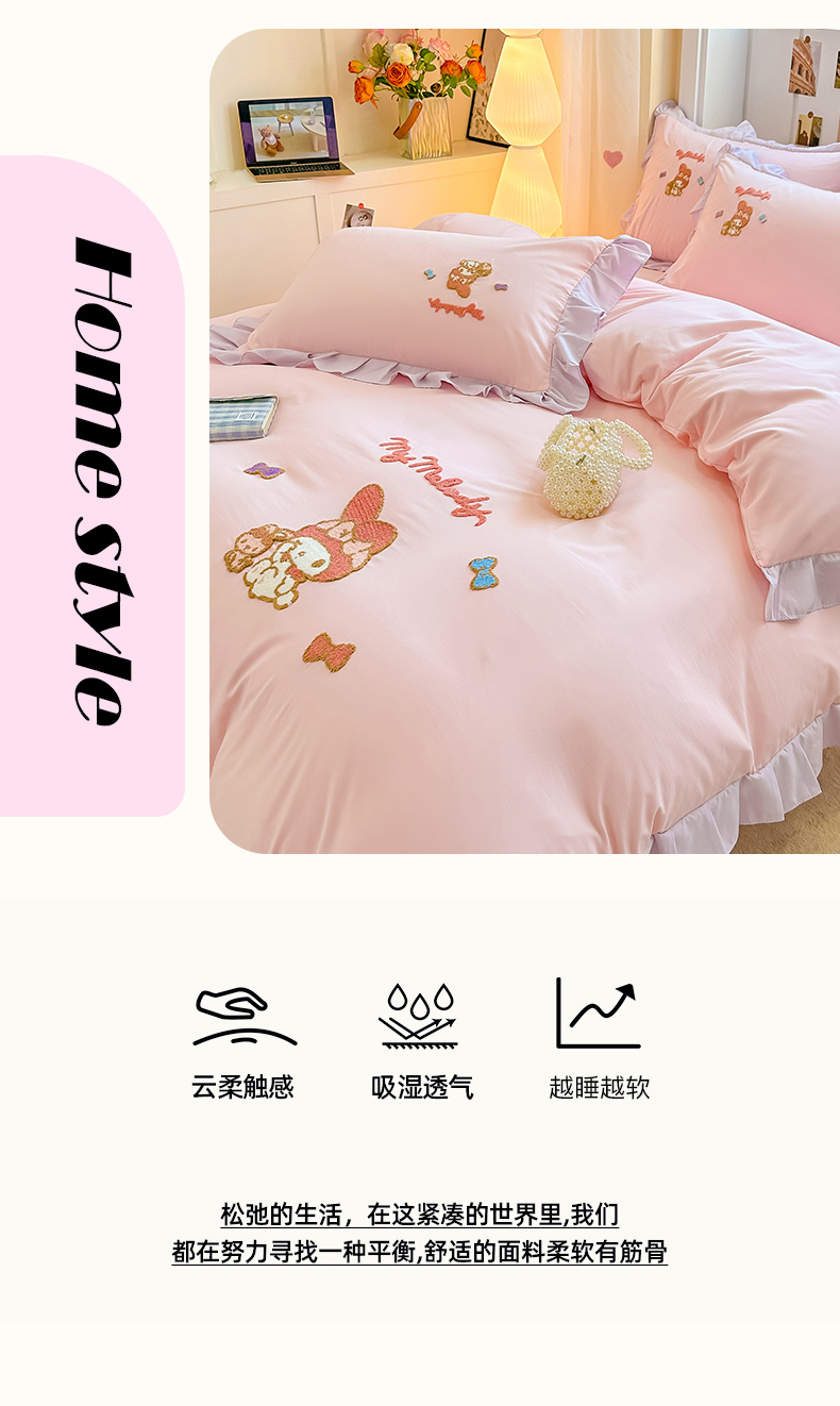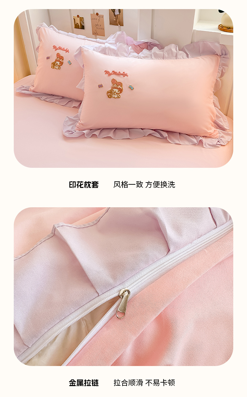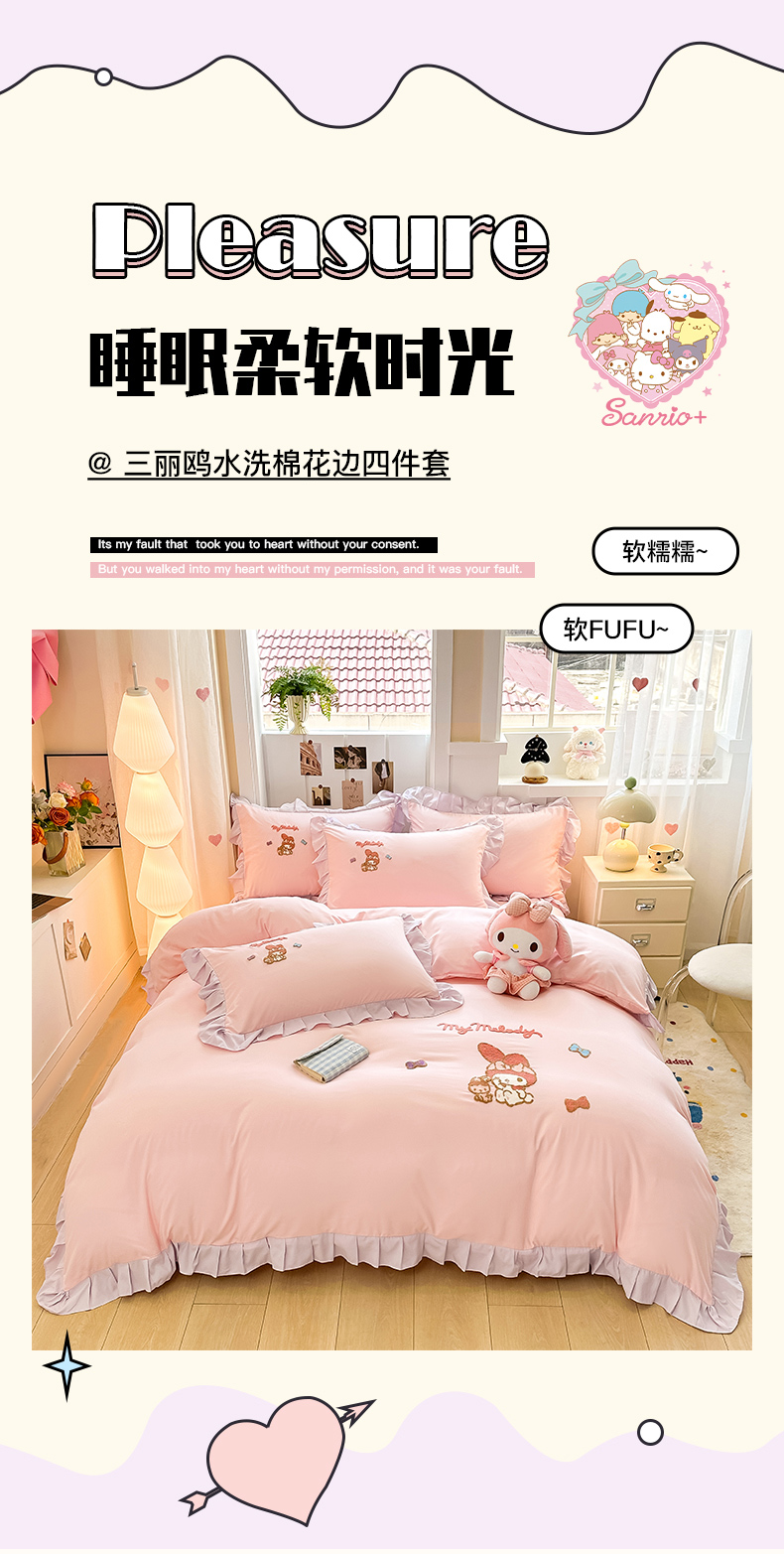 当前位置: 91家纺网 > 商品网购 > 床品套件 > 四件套 > 水洗棉四件套 > 博雅 2025春夏新款毛巾绣三丽鸥水洗棉花边四件套正版授权 毛巾绣-小兔美乐蒂