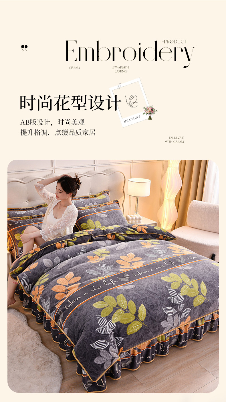 (总)绒宴 2025新款8.5斤牛奶绒金貂法莱绒床裙款保暖四件套,海棠,绮梦园,爱心派对,暗香,初遇,蝶梦,花海,林中有鹿,流金岁月,玫瑰庄园,萌豚卡皮,暮色恋人,蔷薇密语,绅士条纹,时光旅行,拾光,似水流年,一莲幽梦,郁金花开,约定,繁花,梦幻蝴蝶,钟爱一生,爱心箭,大蓝格,简易生活,音乐狗,骑士风范,小奶牛,爱丽丝-绿,多彩有杏,兰亭序,麦穗,蜜桔恋,秋日森林-鹿,三生有幸-灰,太空人,晚香玉,星星世界,英伦时尚,三生有幸-橘,时尚之约-蓝