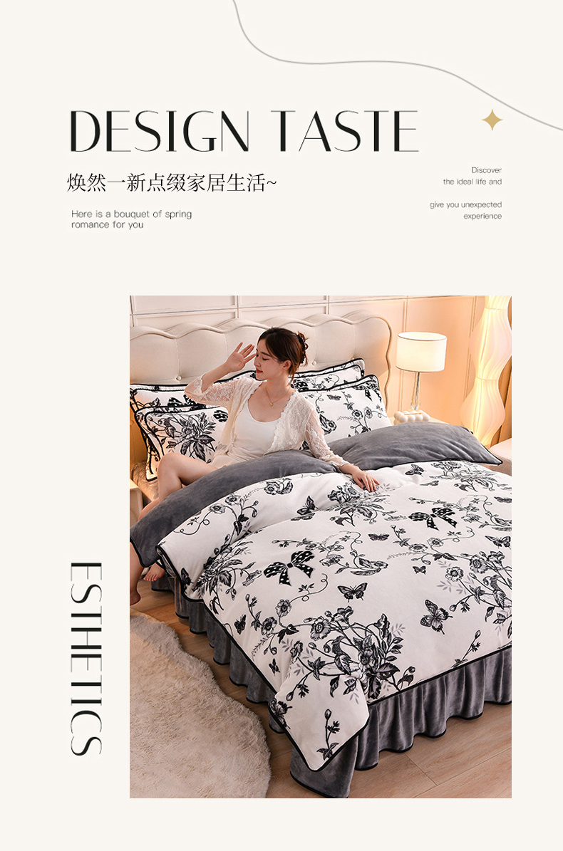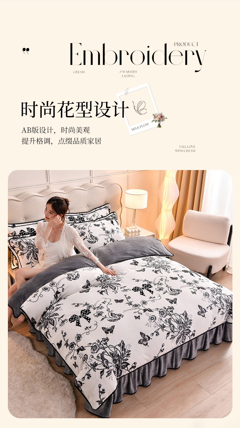 绒宴 2025新款8.5斤牛奶绒金貂法莱绒床裙款保暖四件套 绮梦园,绮梦园