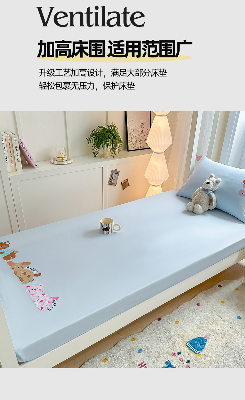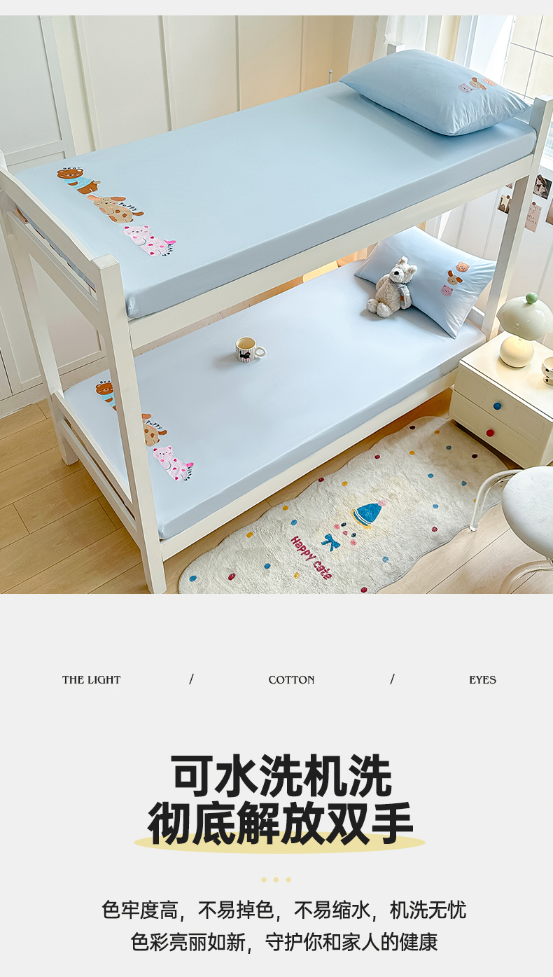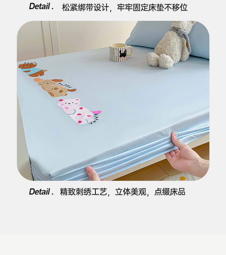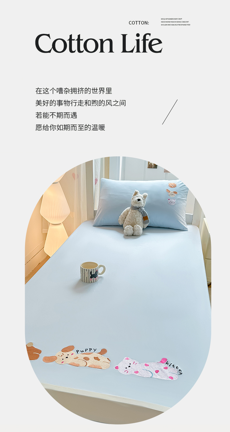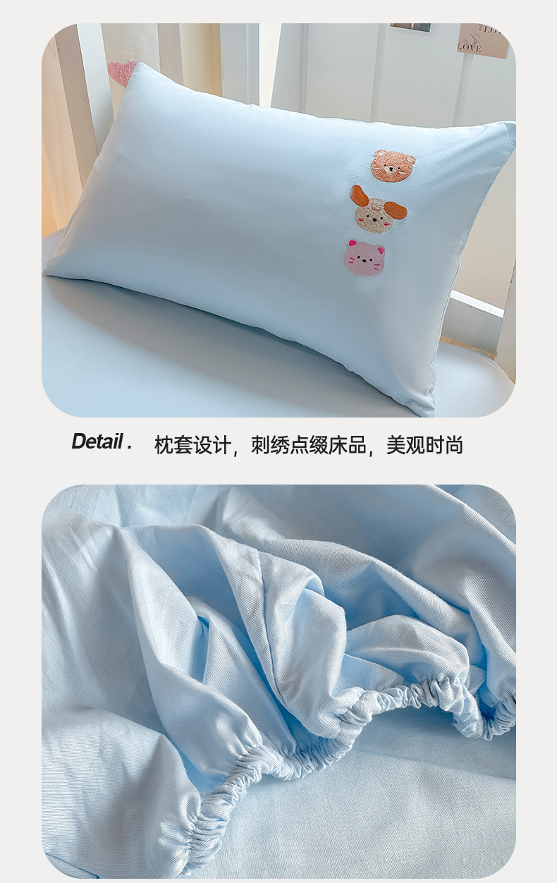 • 91家纺网 家纺一手货源 找家纺 灰鲸 2025新款全棉刺绣床笠-懒懒小憩学生床系列 懒懒小憩-蓝