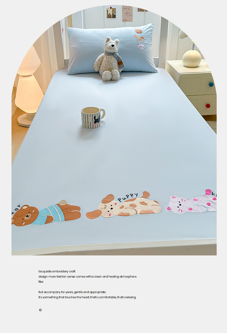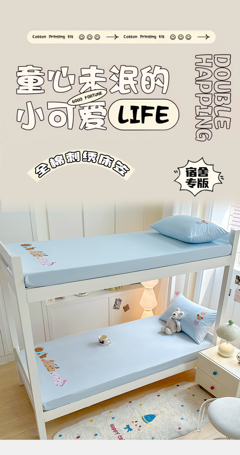 灰鲸 2025新款全棉刺绣床笠-懒懒小憩学生床系列 懒懒小憩-蓝