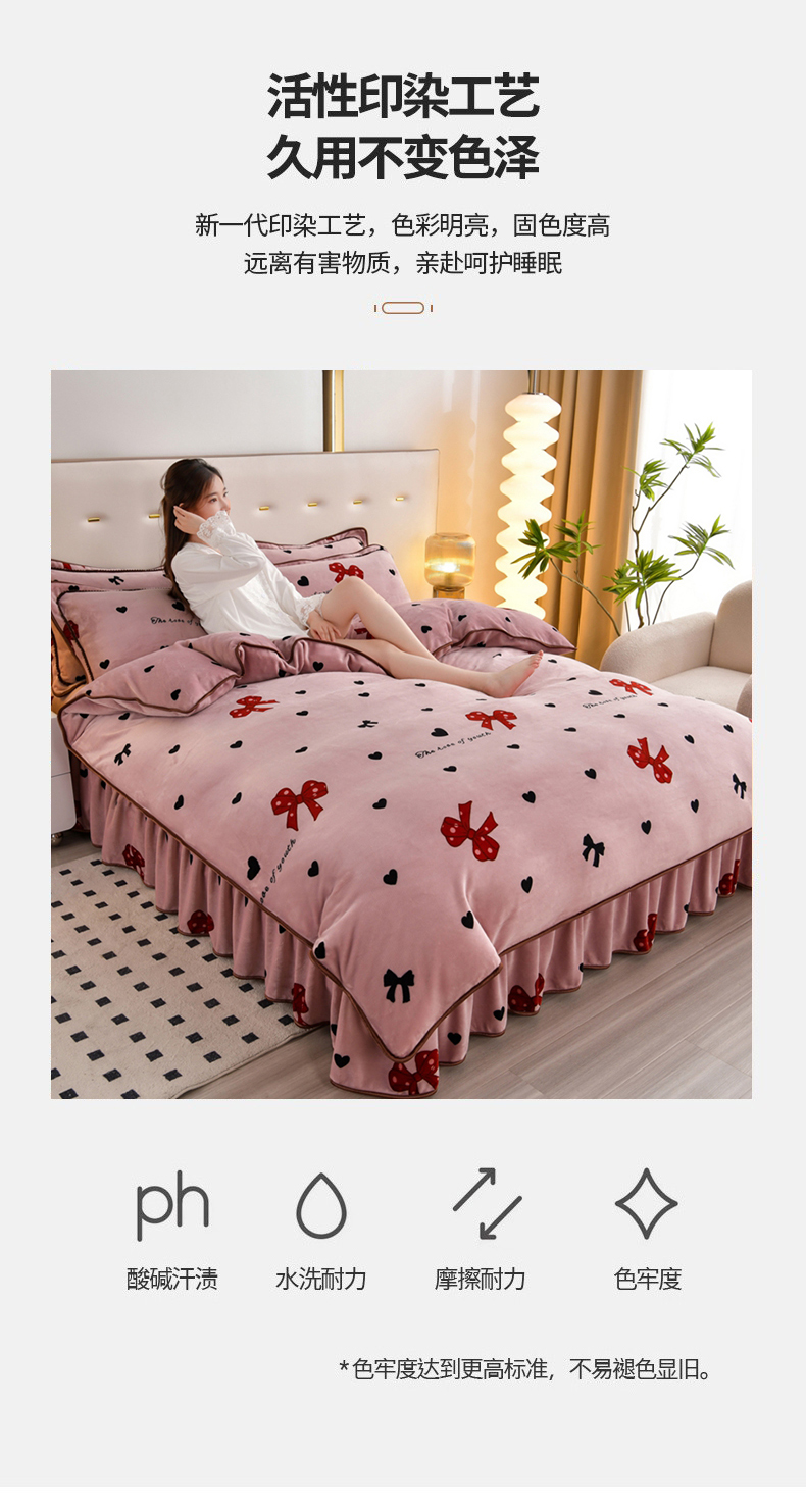 芯诗曼 2025直播高克重牛奶绒四件套法莱绒金貂貂狐保暖单被套 蝴蝶结