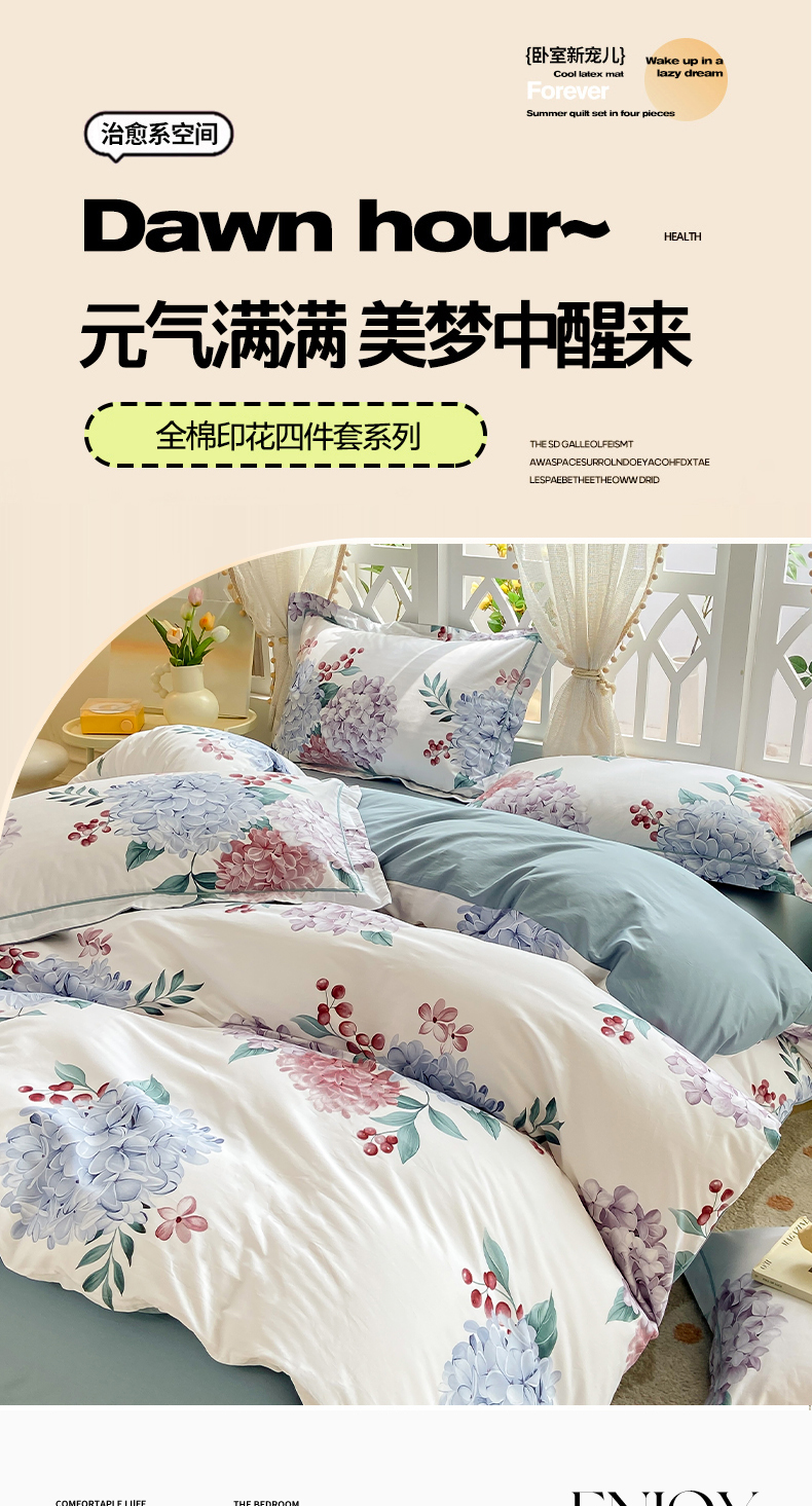 (总)红淳家纺 2026新款13070全棉纯棉印花四件套系列,冰岛小马,咖啡熊,漫漫花香,山茶私语,悠悠花园