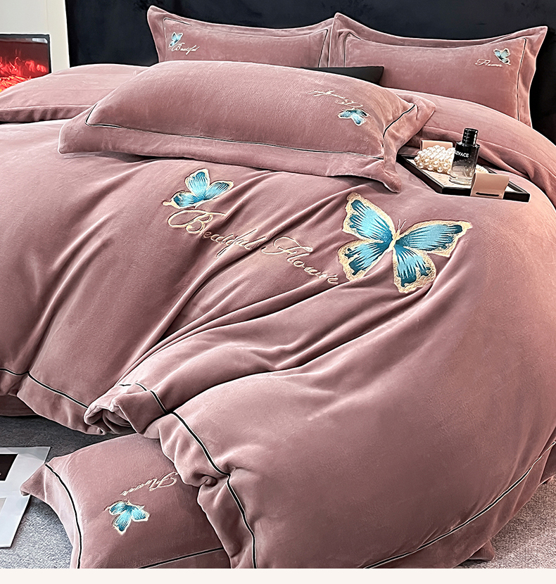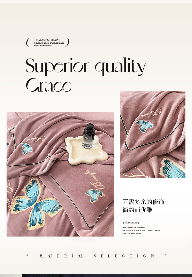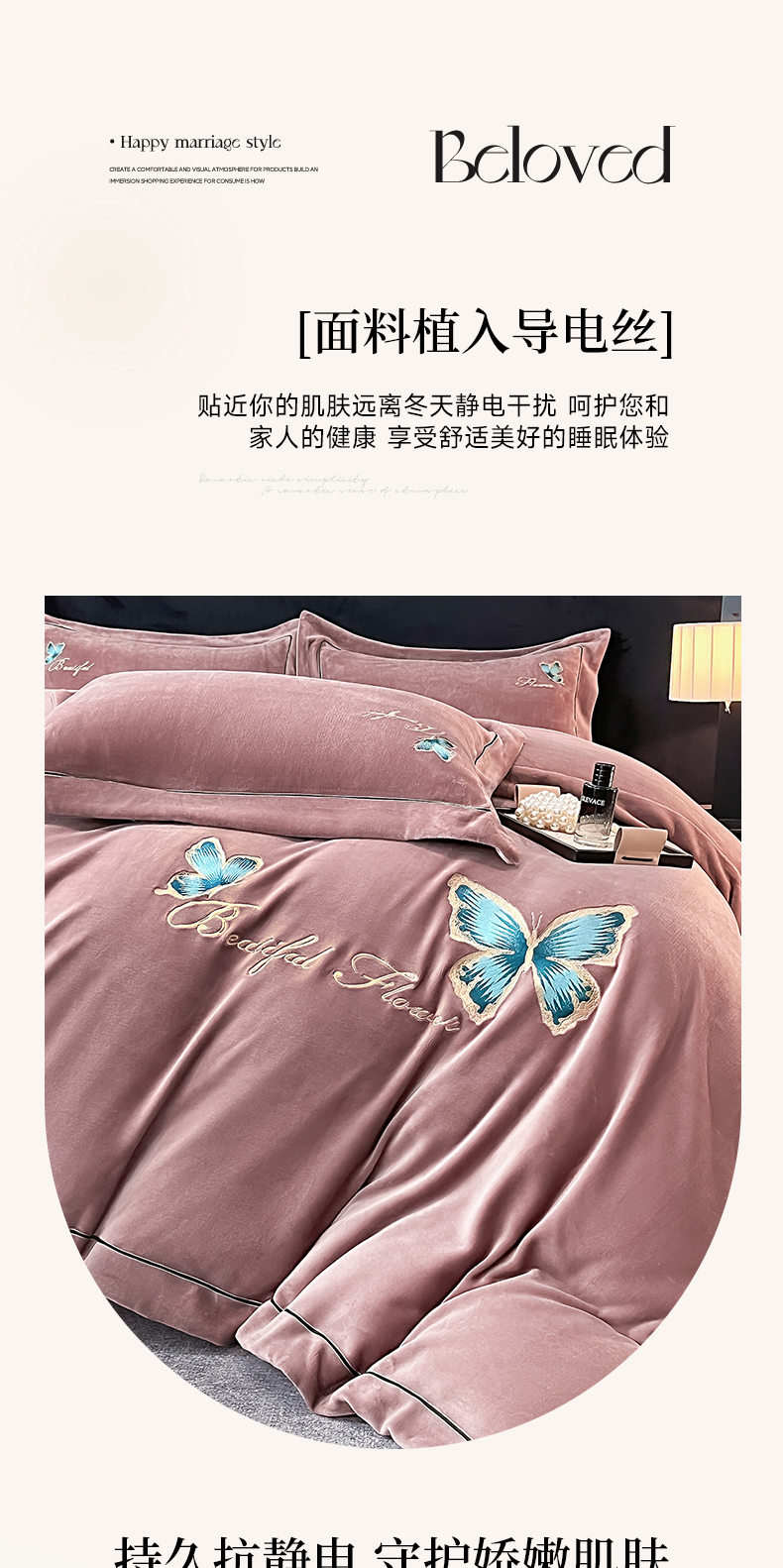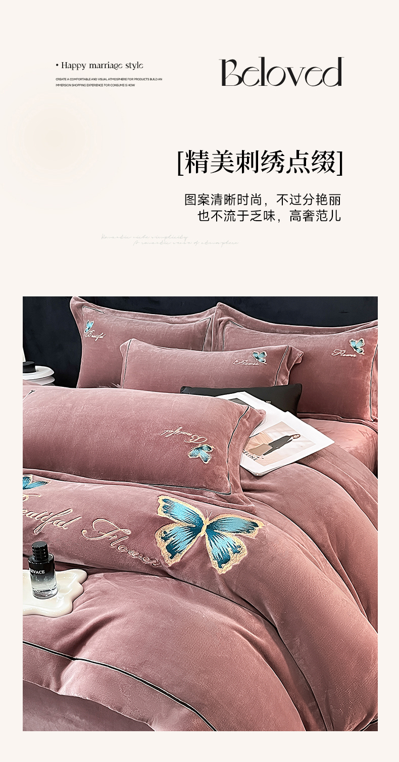 妮恒美家纺 2025新款牛奶绒刺绣四件套唯美蝴蝶结系列 唯美-相约拿铁