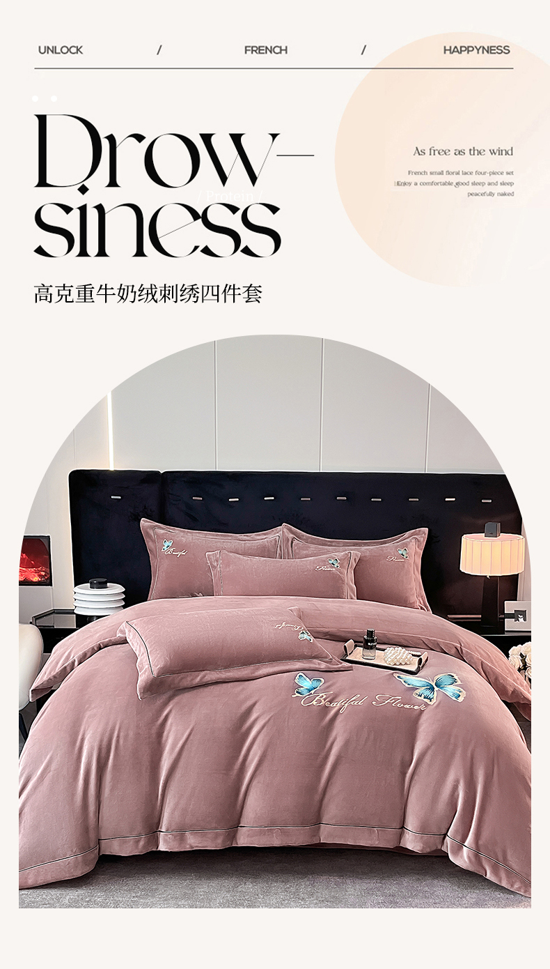 (总)妮恒美家纺 2025新款牛奶绒刺绣四件套-简爱系列,简爱-白奶咖+焦糖,简爱-藏蓝,简爱-豆沙+浅灰,简爱-枫林蓝+宾利蓝,简爱-高级卡,简爱-火山灰+安哥拉红,简爱-焦糖+浅灰,简爱-暖心紫,简爱-浅蓝+故宫蓝,简爱-绅士白+浅灰,简爱-石英灰+浅灰,简爱-雾蓝+浅灰,简爱-陨石拿铁+藏蓝