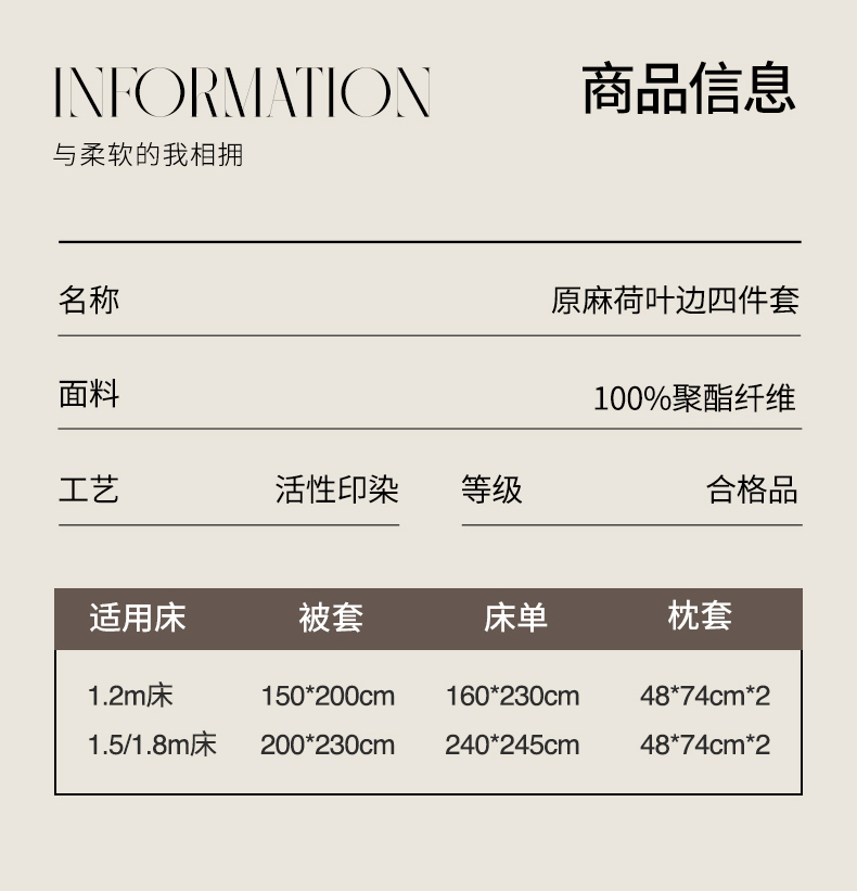 商品名称:宝士康家纺 2025新品10A抗菌原麻荷叶边床单款四件套 灰色空间