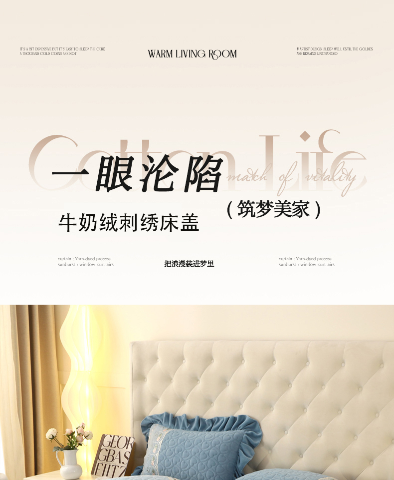 • 91家纺网 家纺一手货源 找家纺 (总)能好家纺 2025新款牛奶绒刺绣床盖四件套,豆沙粉,果绿,灰,蓝,米白,驼色