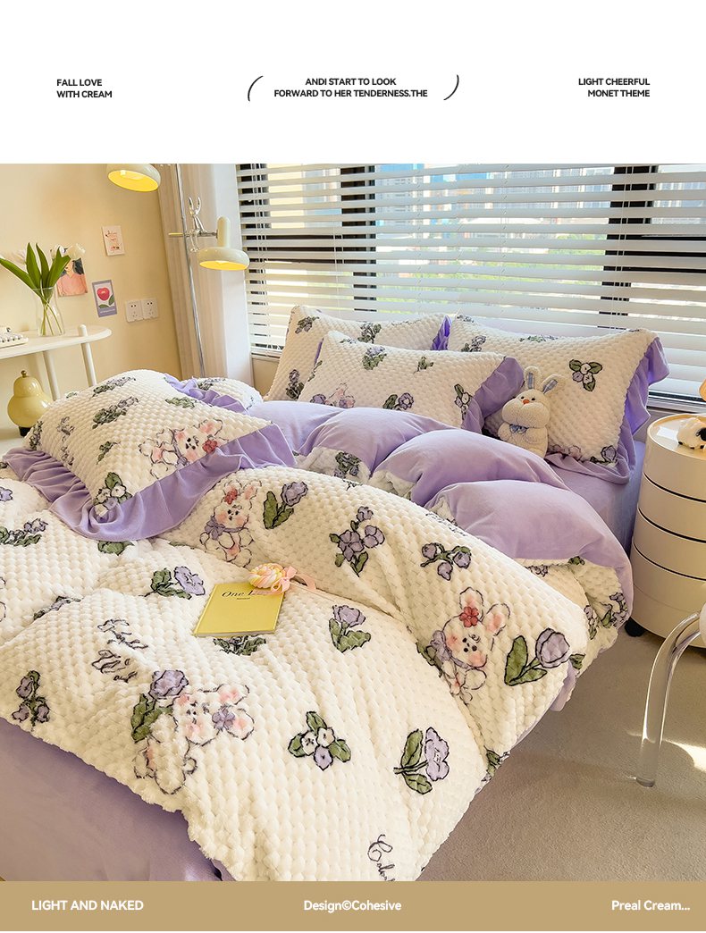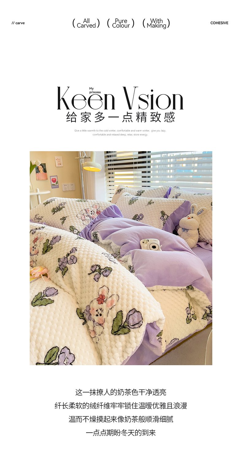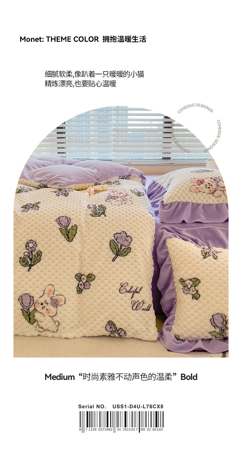 (总)摩妮卡 2025新款小清新加厚260克牛奶绒泡泡绒四件套,甜系兔兔,幽香恋曲,软萌萌小兔,洛丽兔,紫韵美乐蒂,萌兔时光,凯蒂小熊,软萌小猫,暮雅,快乐每一天,花园狗,奶蓝玉桂狗,小兔甜甜酱