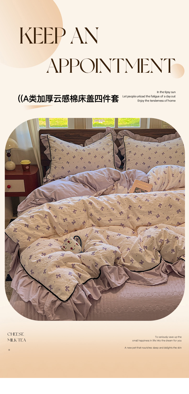 (总)美梦家纺 2025新款牛奶绒花边夹棉床盖四件套,爱心-灰,蝴蝶结-紫,蝶舞,蕾丝花-蓝,豆蔻,咖波点,蝴蝶结-灰,灵动草莓-米,秋叶-咖,甜美女孩,乌梅紫酱,星辰蝶语-紫,雨后花园,紫色物语,冰淇淋
