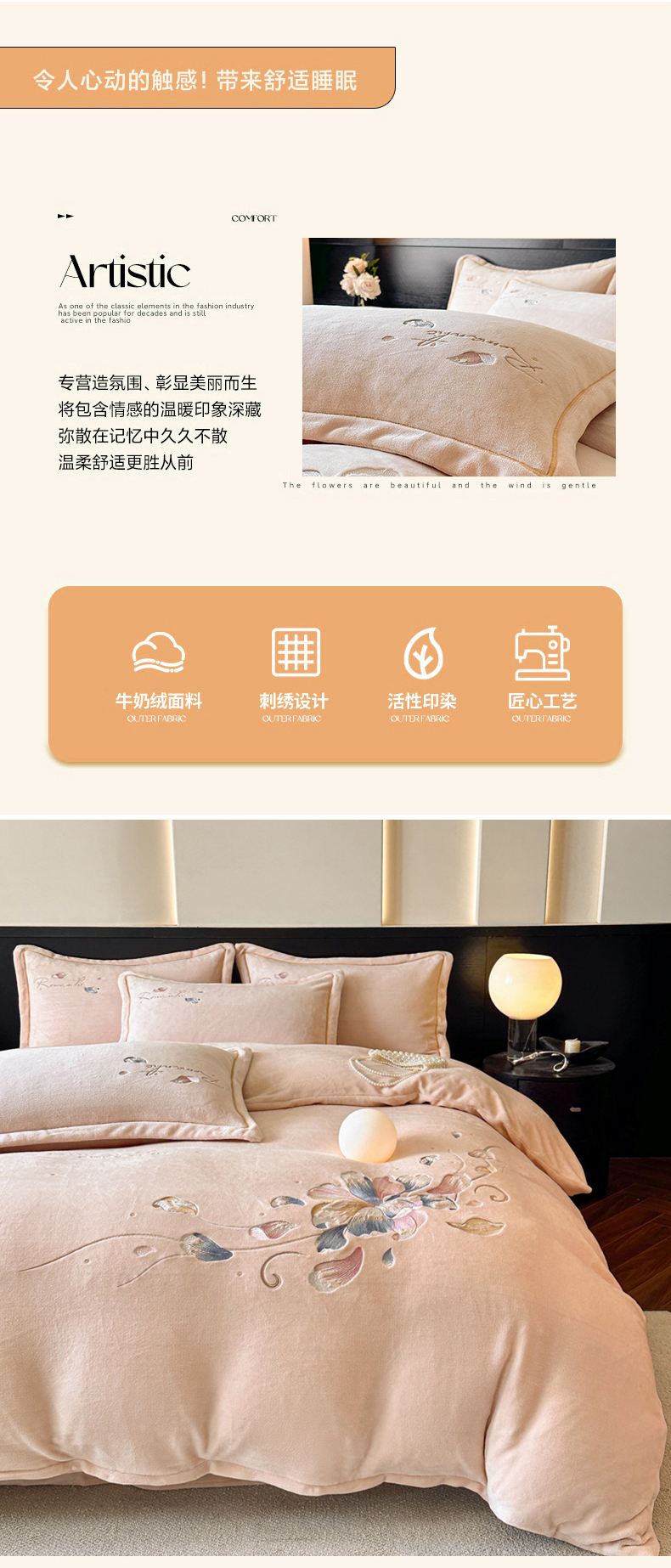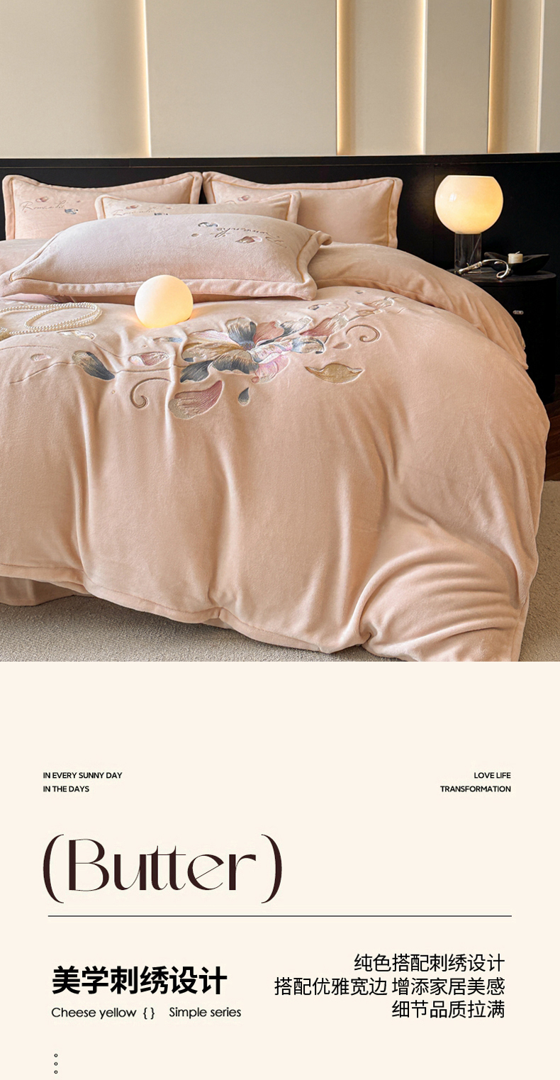 (总)诺梵家纺 2025新款牛奶绒绣花绒四件套,芳华-宝蓝,芳华-豆沙,芳华-湖兰,芳华-米白,芳华-抹茶绿,伊莉莎-米白,伊莉莎-抹茶绿