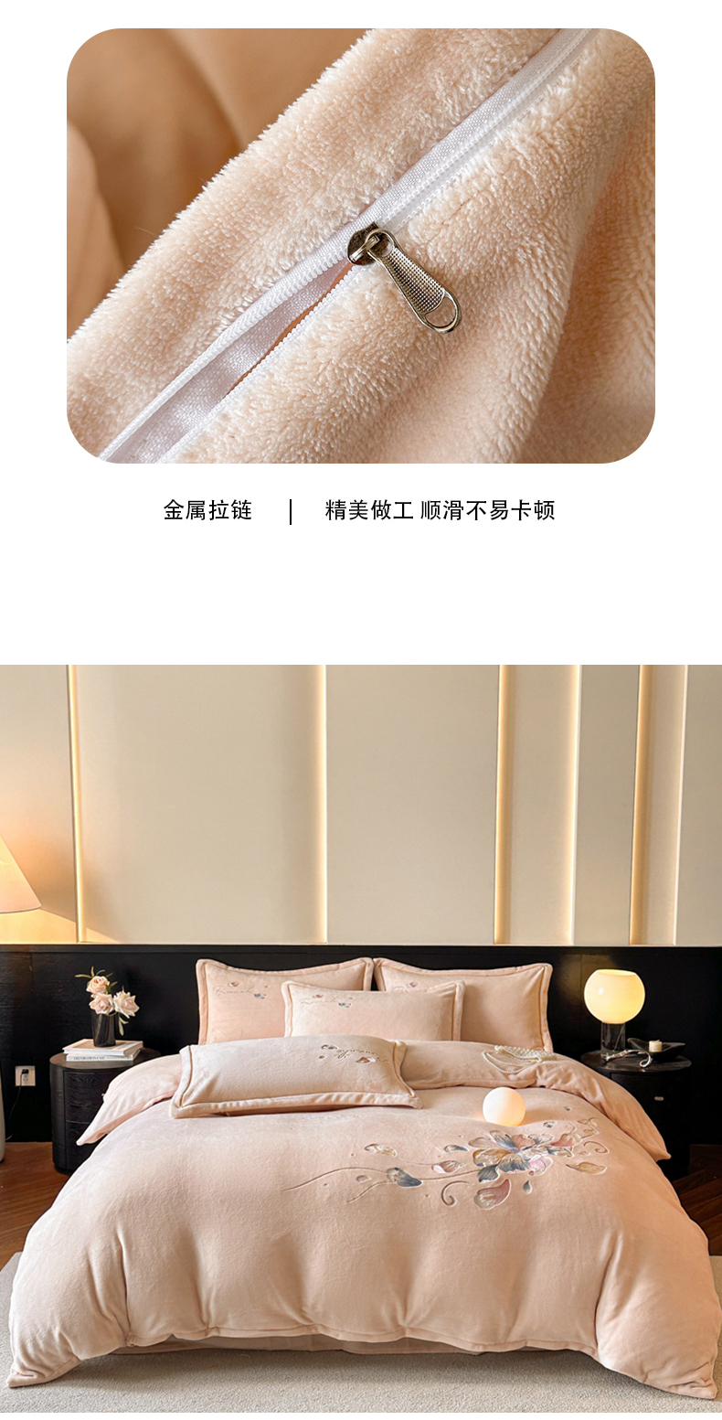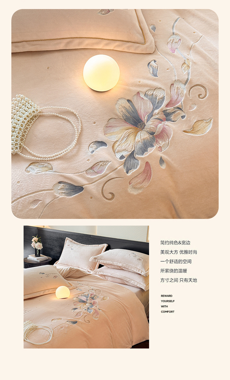 诺梵家纺 2025新款8斤牛奶绒刺绣绣花四件套 寻春-肉粉