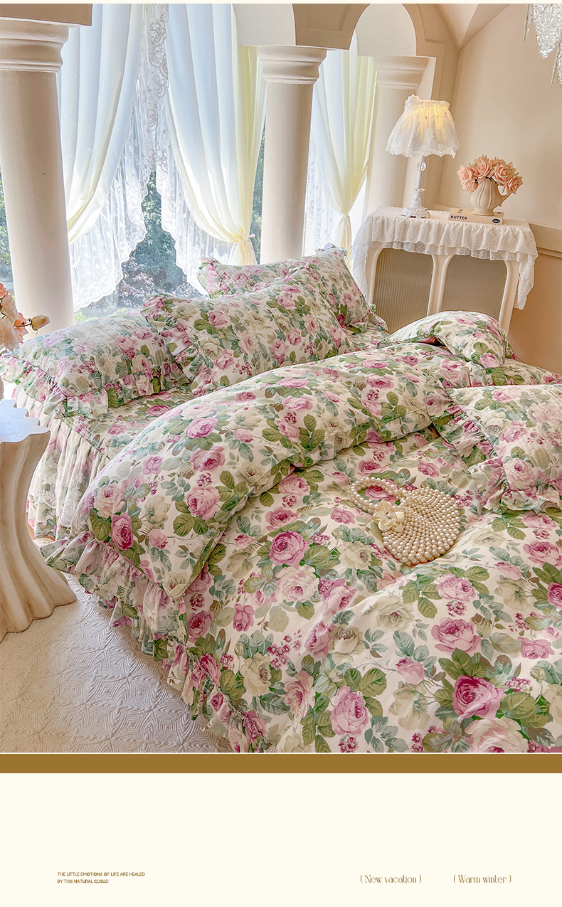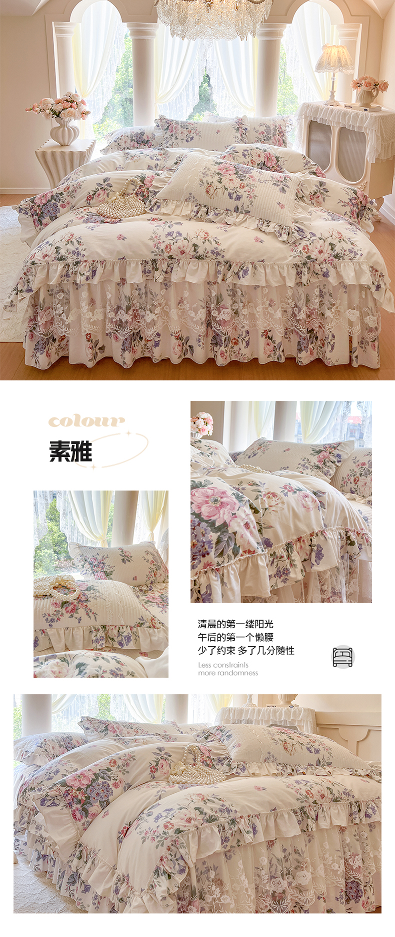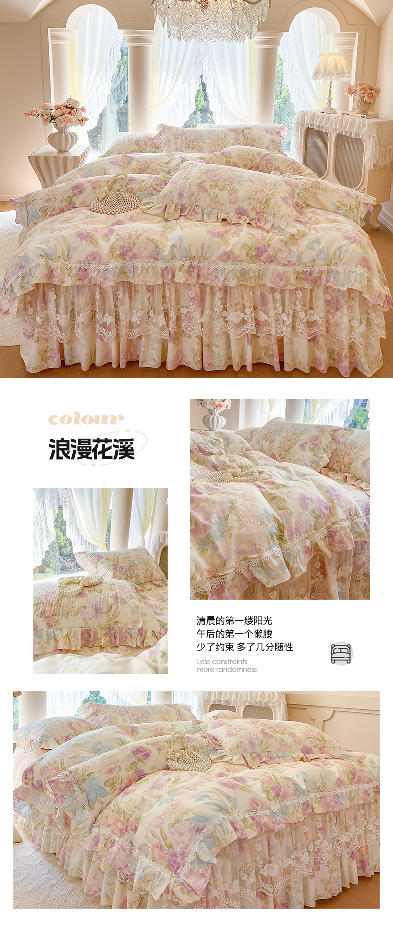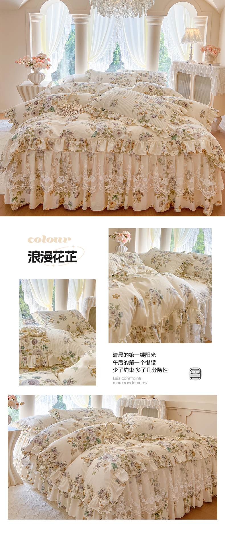 (总)瑞宝 2025新款全棉花边床裙三件套系列-落日甜茶,落日甜茶-梦幻玉,落日甜茶-奶油白,落日甜茶-青柠绿,落日甜茶-甜紫