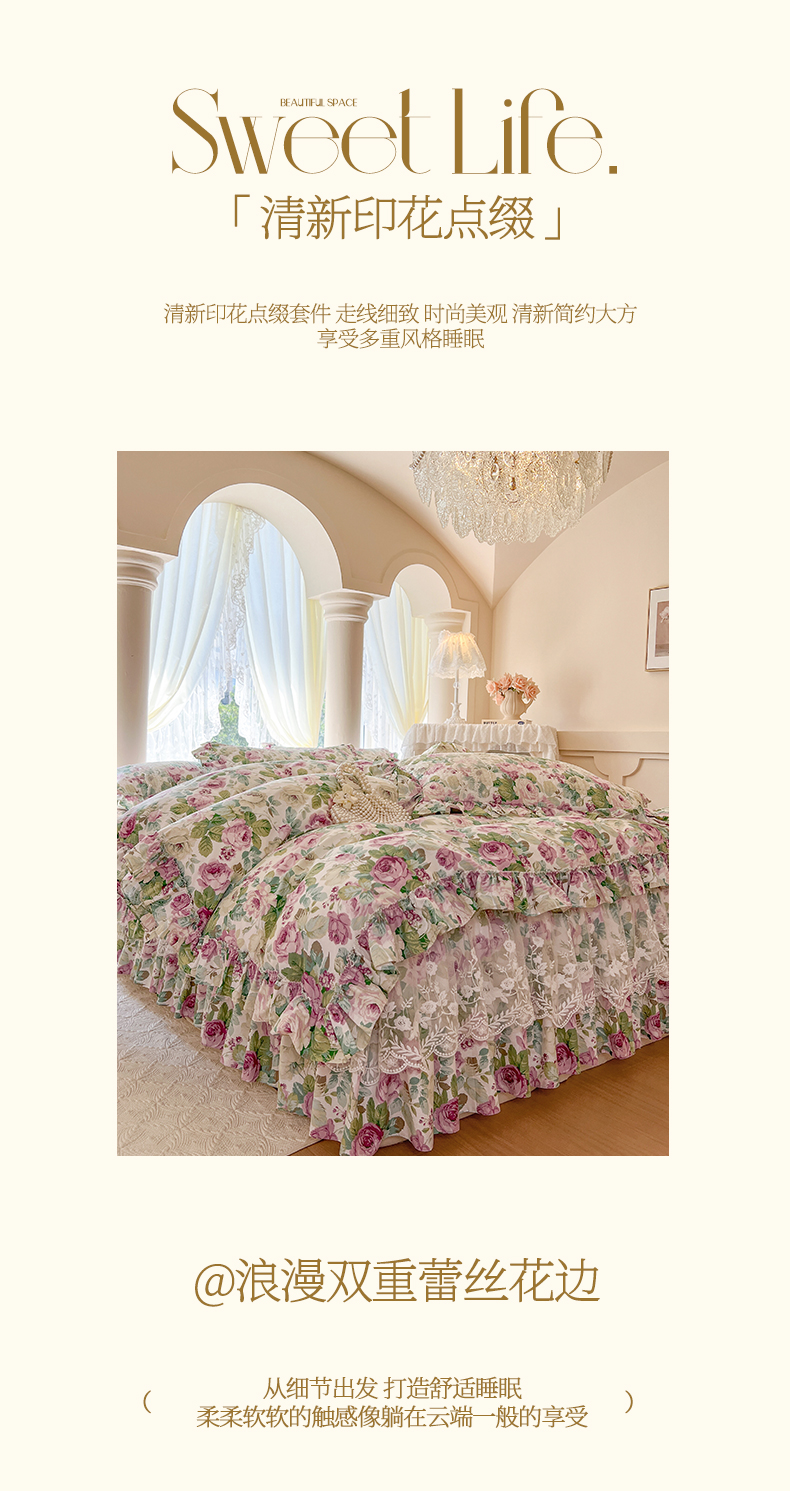 (总)瑞宝 2025新款13372全棉印花花边床裙四件套