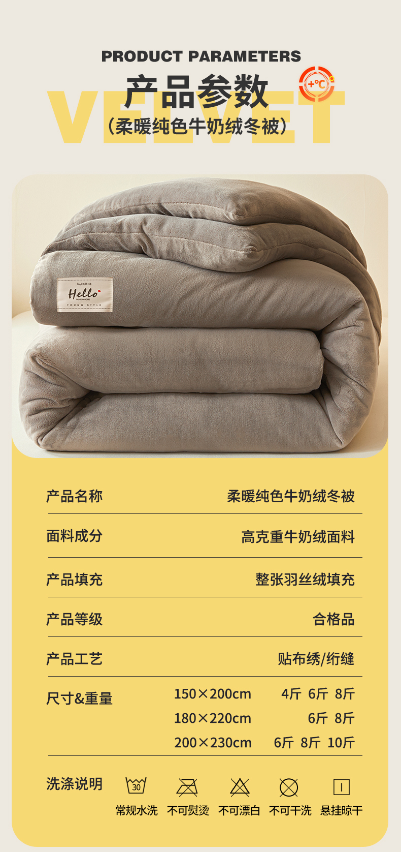 • 91家纺网 家纺一手货源 找家纺 鑫佰利 2025新款柔暖纯色牛奶绒冬被被子被芯 星灰