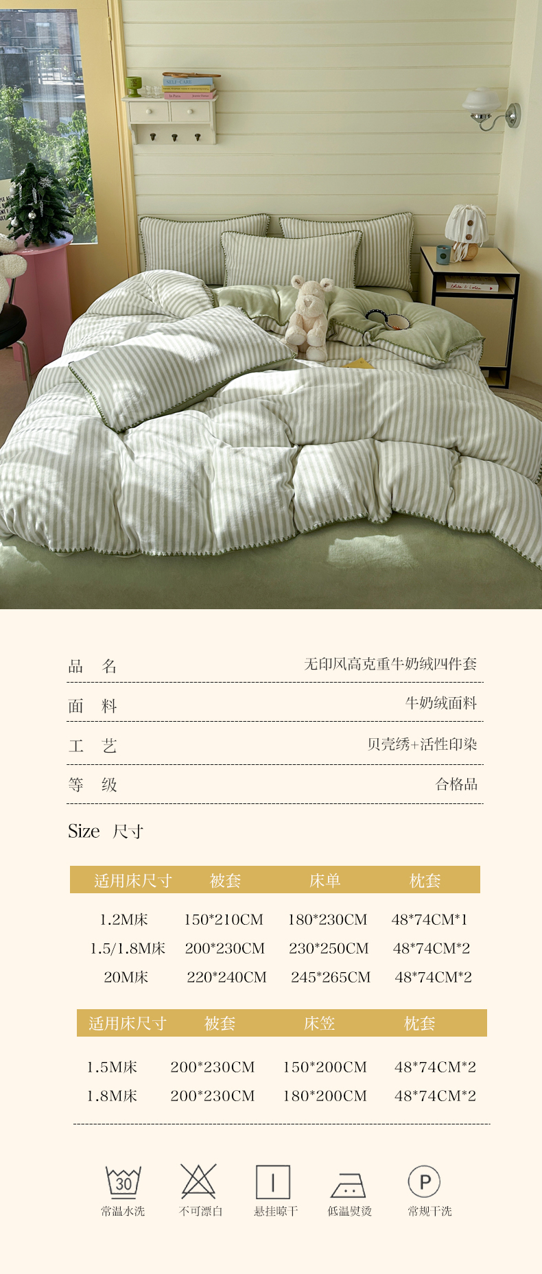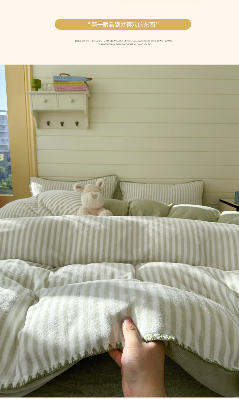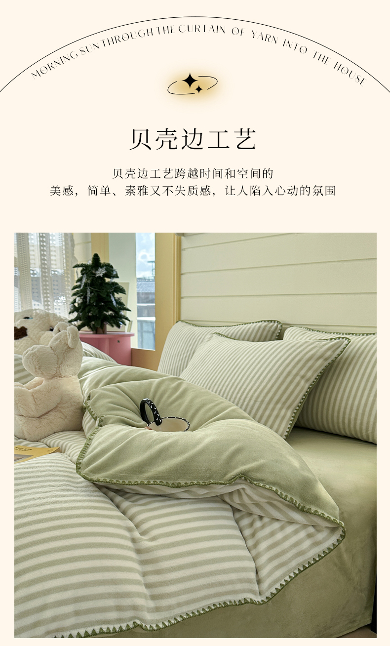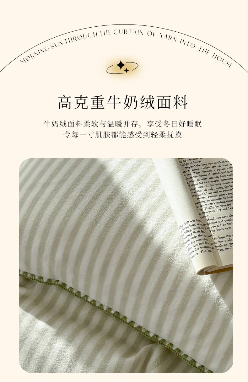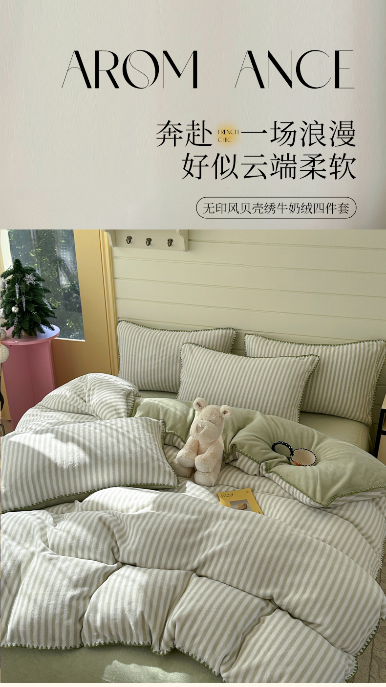 当前位置: 91家纺网 > 商品网购 > 床品套件 > 四件套 > 牛奶绒四件套 > 三朵家纺 2025新款无印风三角针牛奶绒四件套 薄荷绿细条