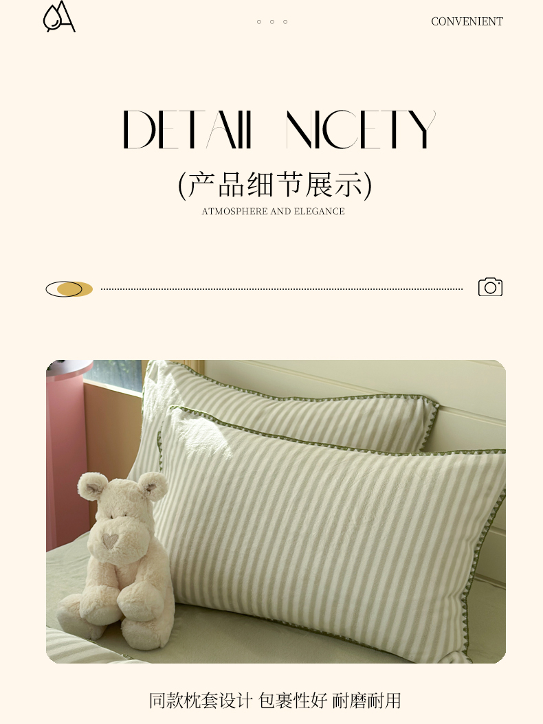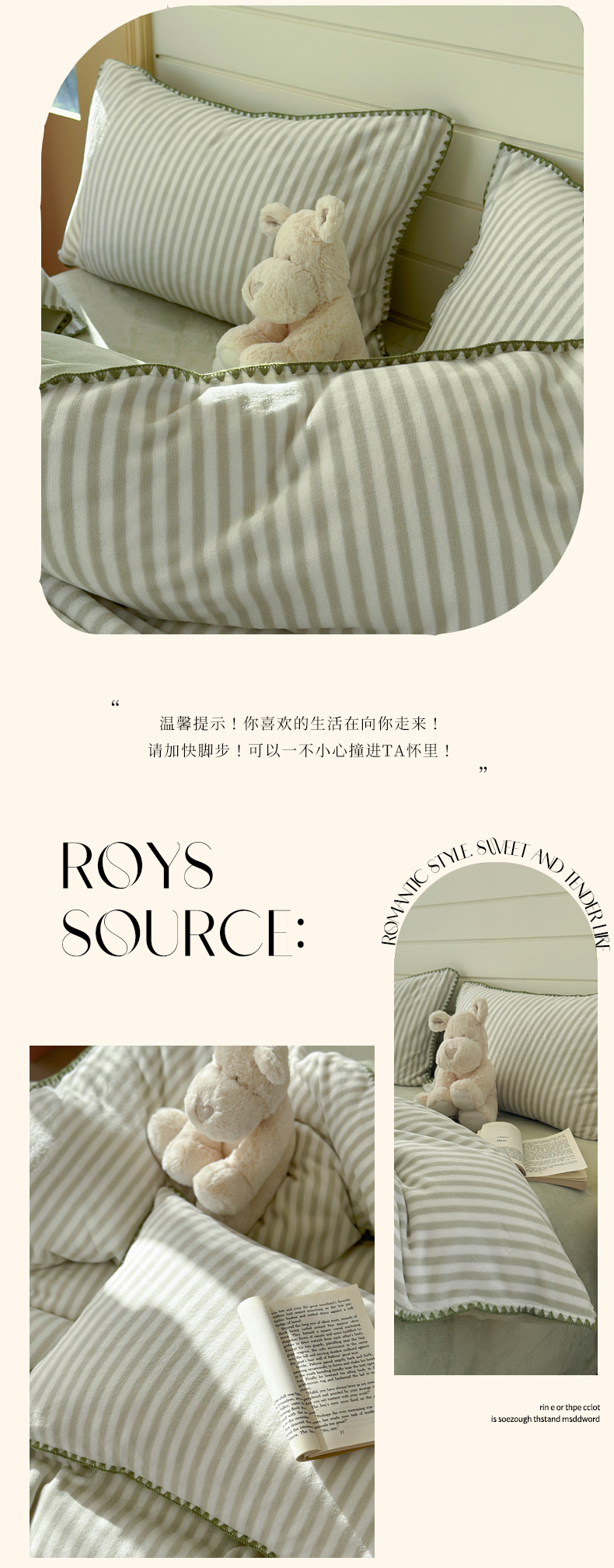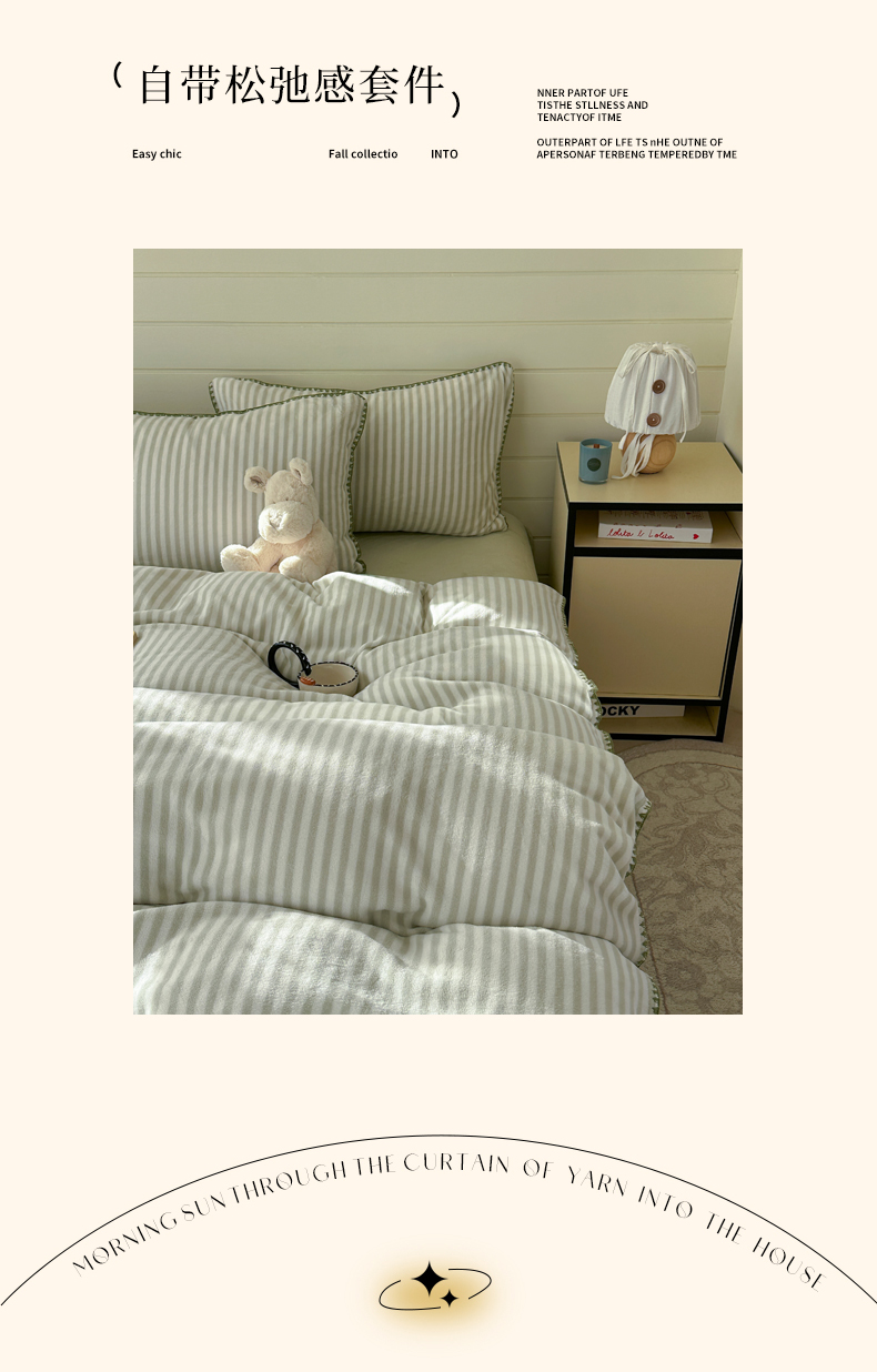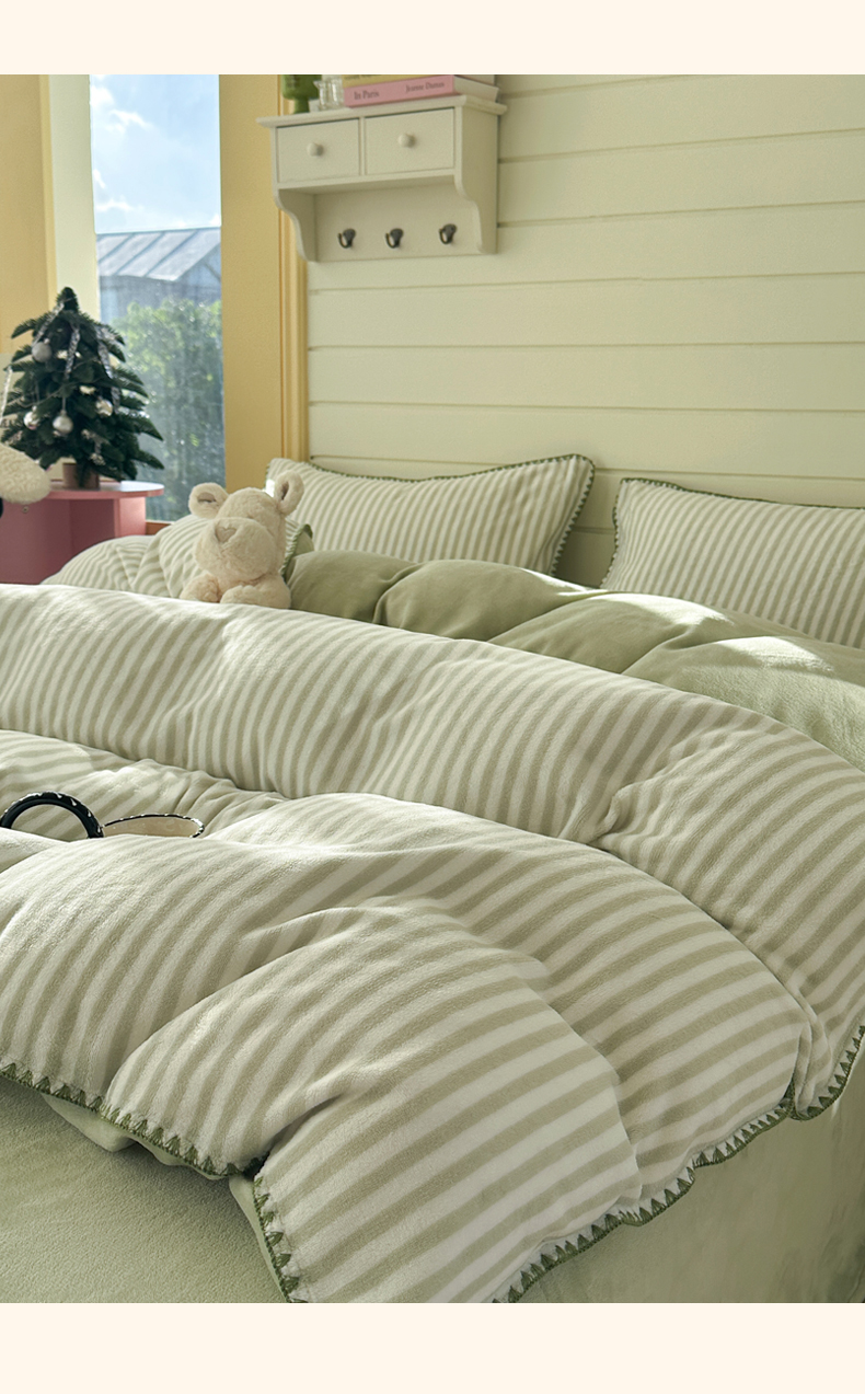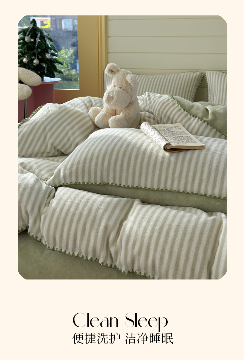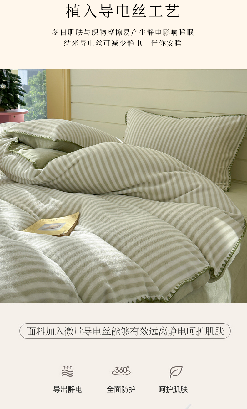 当前位置: 91家纺网 > 商品网购 > 床品套件 > 四件套 > 牛奶绒四件套 > 三朵家纺 2025新款无印风三角针牛奶绒四件套 薄荷绿细条