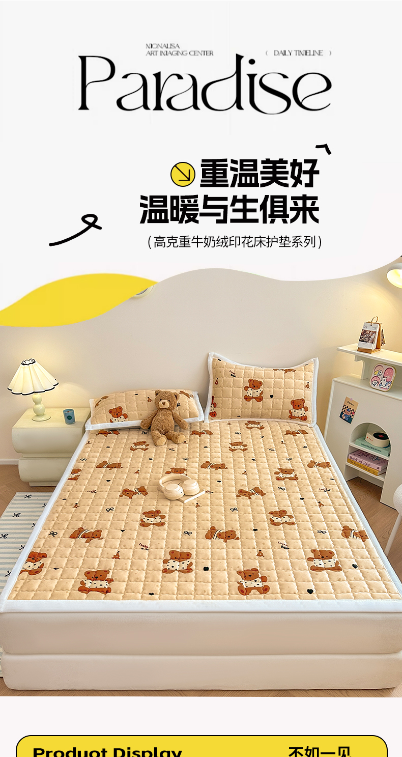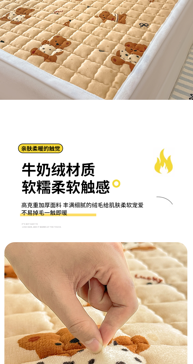 • 91家纺网 家纺一手货源 找家纺 川悦生活 2025新款A类印花牛奶绒床垫加厚绒保暖床床褥-大床图 床垫酥酥小熊
