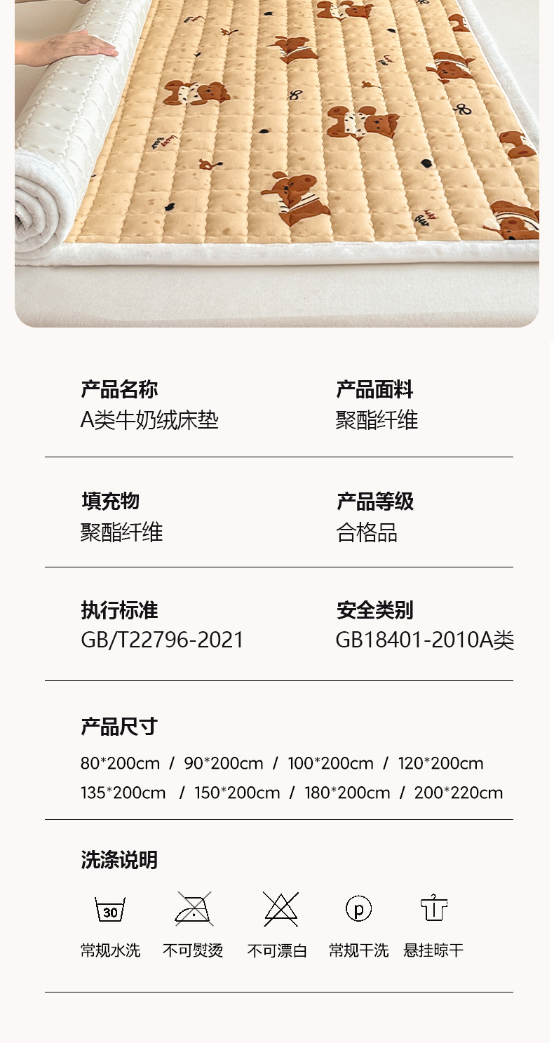 当前位置: 91家纺网 > 商品网购 > 床垫/床褥 > 川悦生活 2025新款A类印花牛奶绒床垫加厚绒保暖床床褥-大床图 床垫酥酥小熊