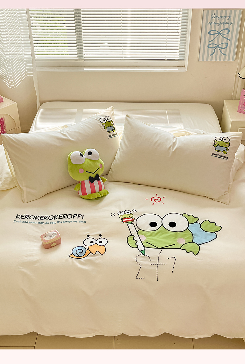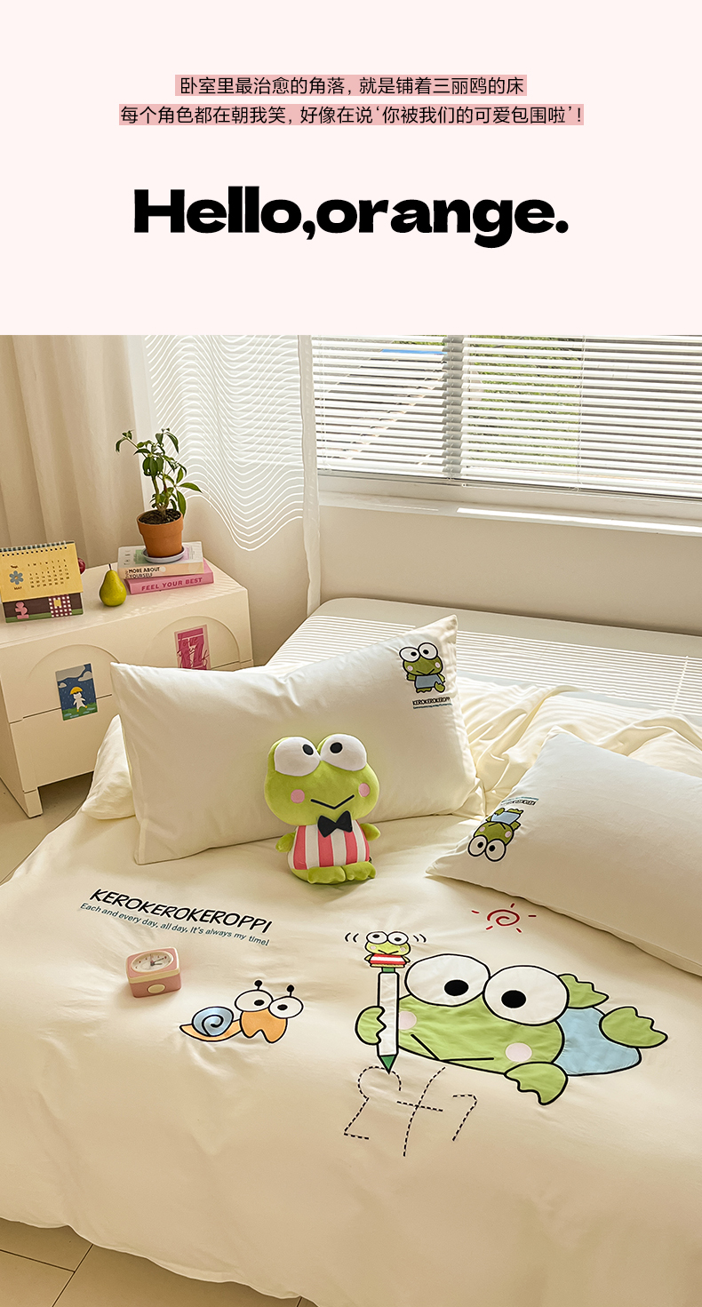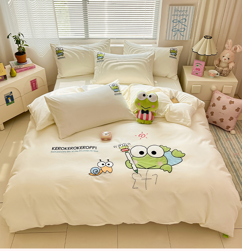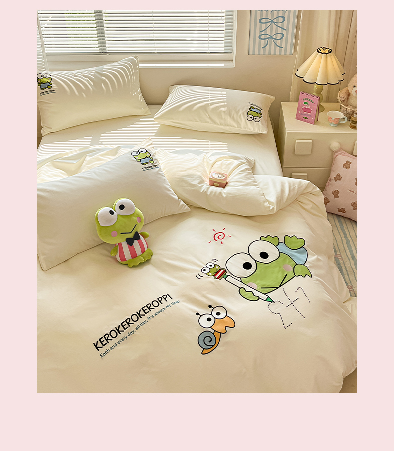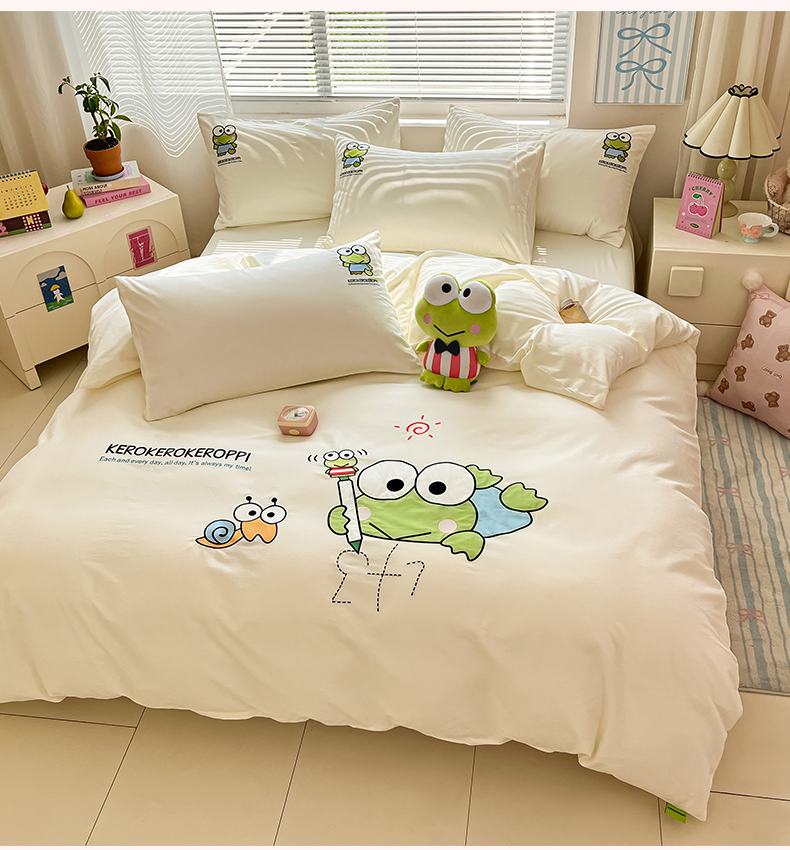 当前位置: 91家纺网 > 商品网购 > 床品套件 > 四件套 > 全棉普通四件套 > 蓝邻家纺 2025年新款全棉纯棉云柔棉三丽鸥刺绣四件套系列 元气大眼蛙