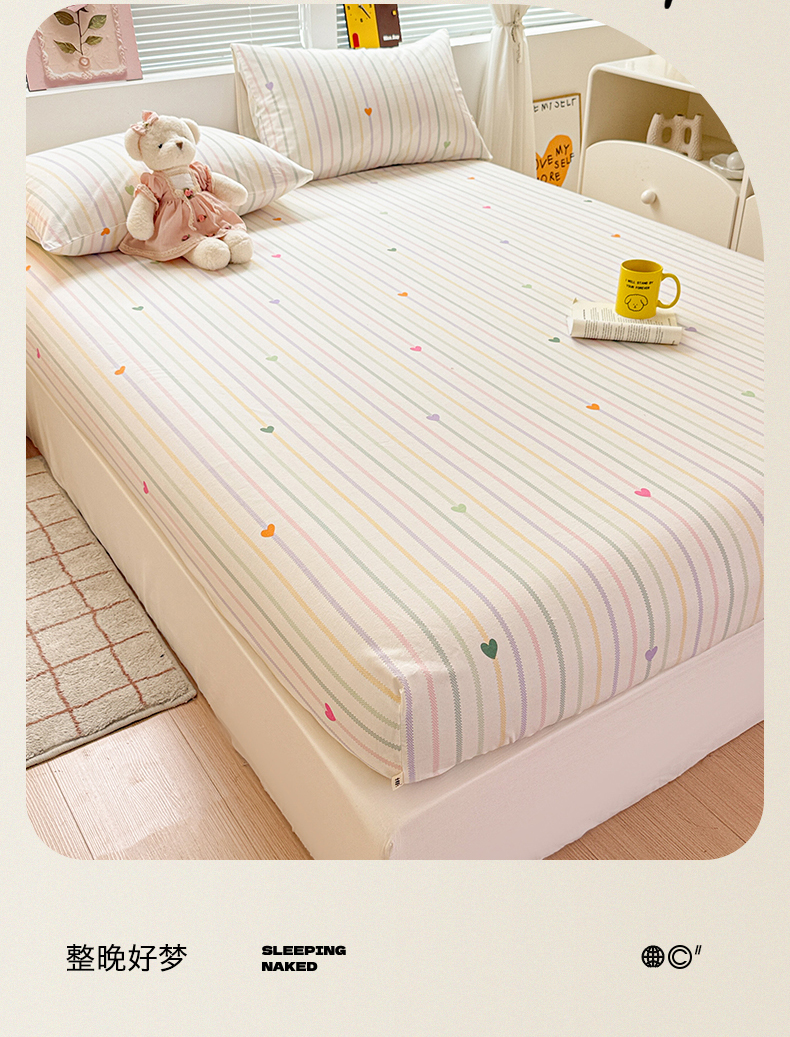 • 91家纺网 家纺一手货源 找家纺 名兮家居 2025新款亲肤舒适全棉纯棉磨毛印花床笠单床笠单品床笠单件床笠 彩色心情
