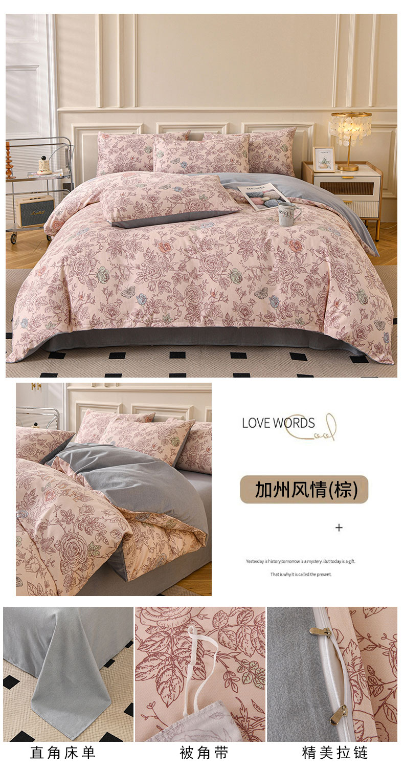 商品名称:宇彬家纺 2025直播热新款秋冬全棉精梳生态原棉印花加厚磨毛轻奢铂金单被套 巴黎之约(棕)