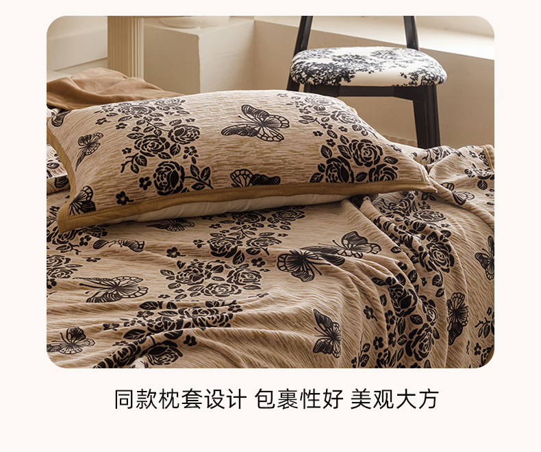 (总)悦然毛巾被 2025新款全棉四层提花纱布美拉德凤格枕套,花蝶红,花蝶咖,花蝶蓝,蔓叶咖,蔓叶蓝,蔓叶棕,玫瑰格调咖,玫瑰格调棕,素布花灰,素布花蓝,野韵,野韵棕,组合